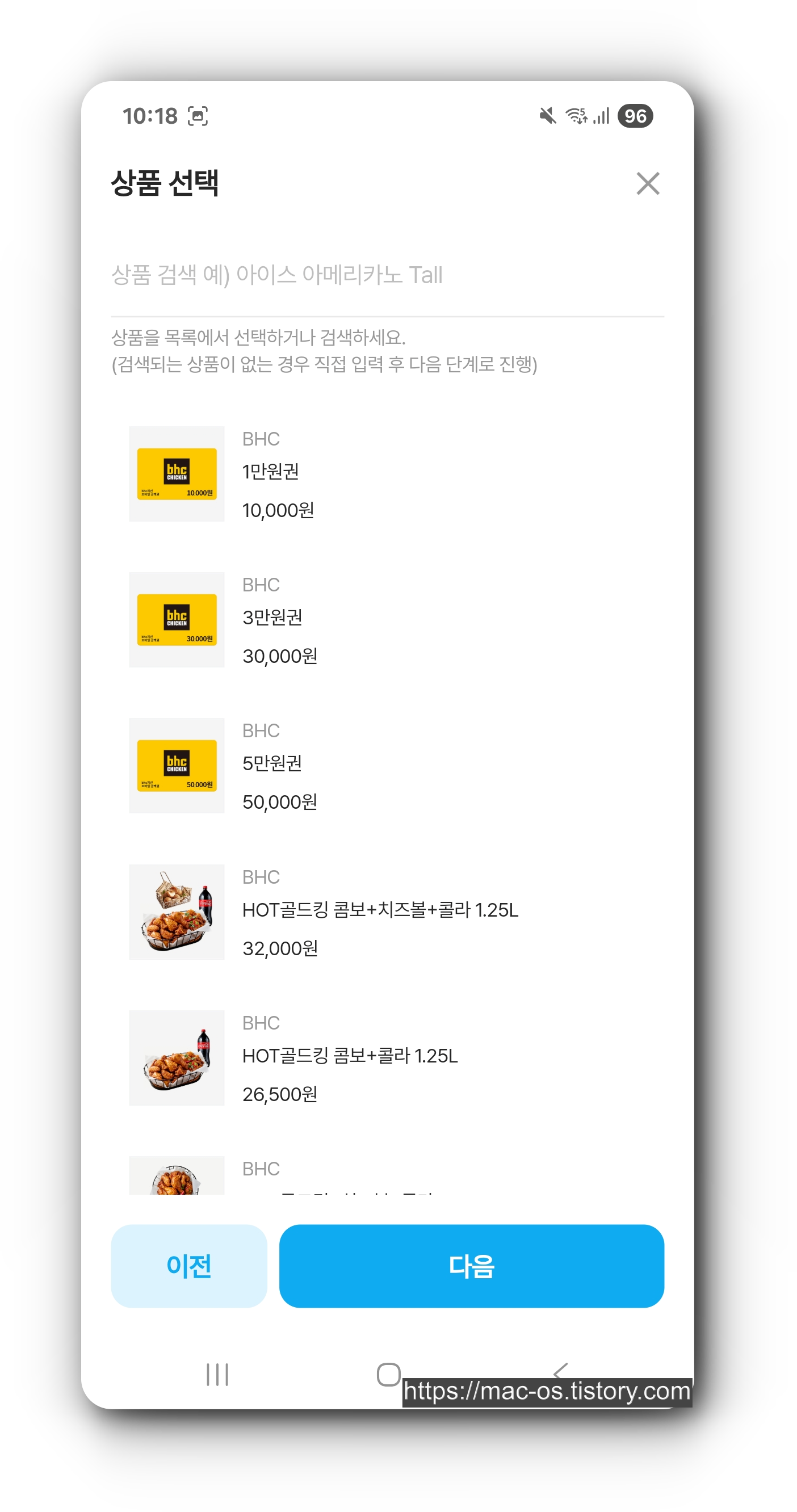 판매하는 기프티콘 상품 명을 검색해 선택하고 판매 정보 페이지에서 판매가를 입력한다.