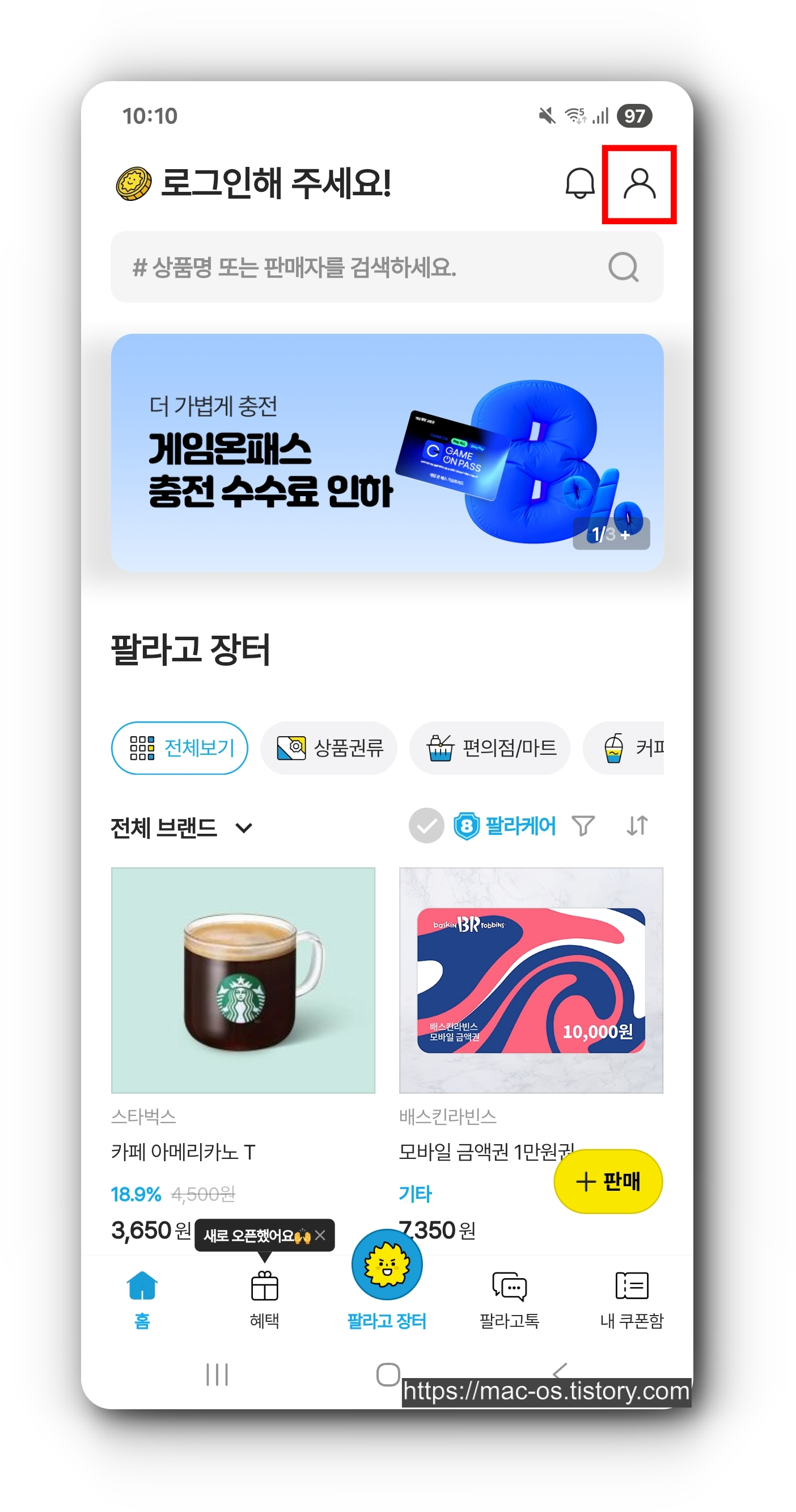 팔라고 가입하고 너도 나도 1,000캐시 받자! 가입 시 초대코드 [RU3GB]를 입력하세요.