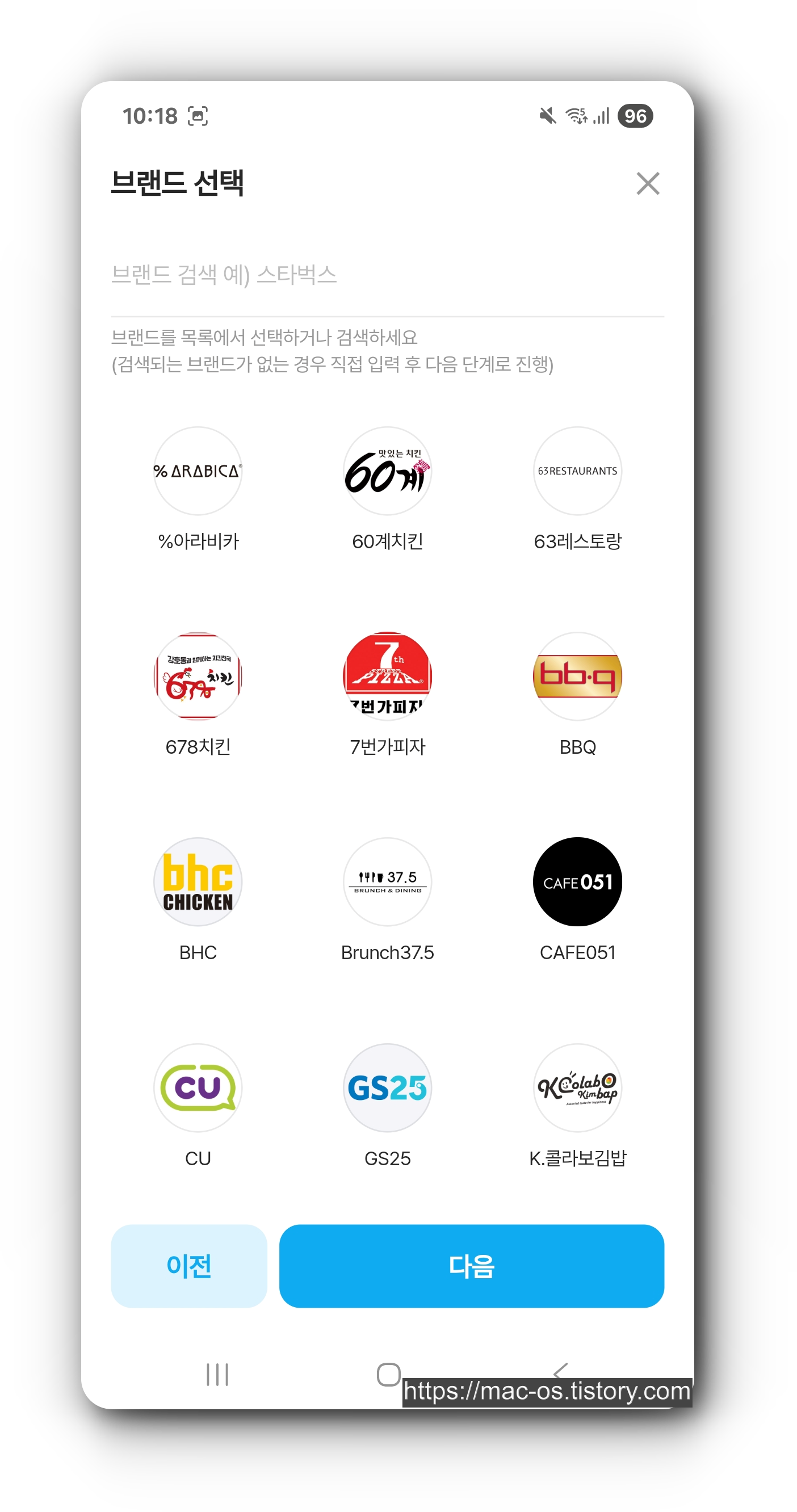 쿠폰 이미지로 등록하거나 쿠폰 직접 등록 2가지 방법이 있다. 우선 쿠폰 직접 등록을 누르면 본인이 브랜드를 검색해 선택하게 된다.