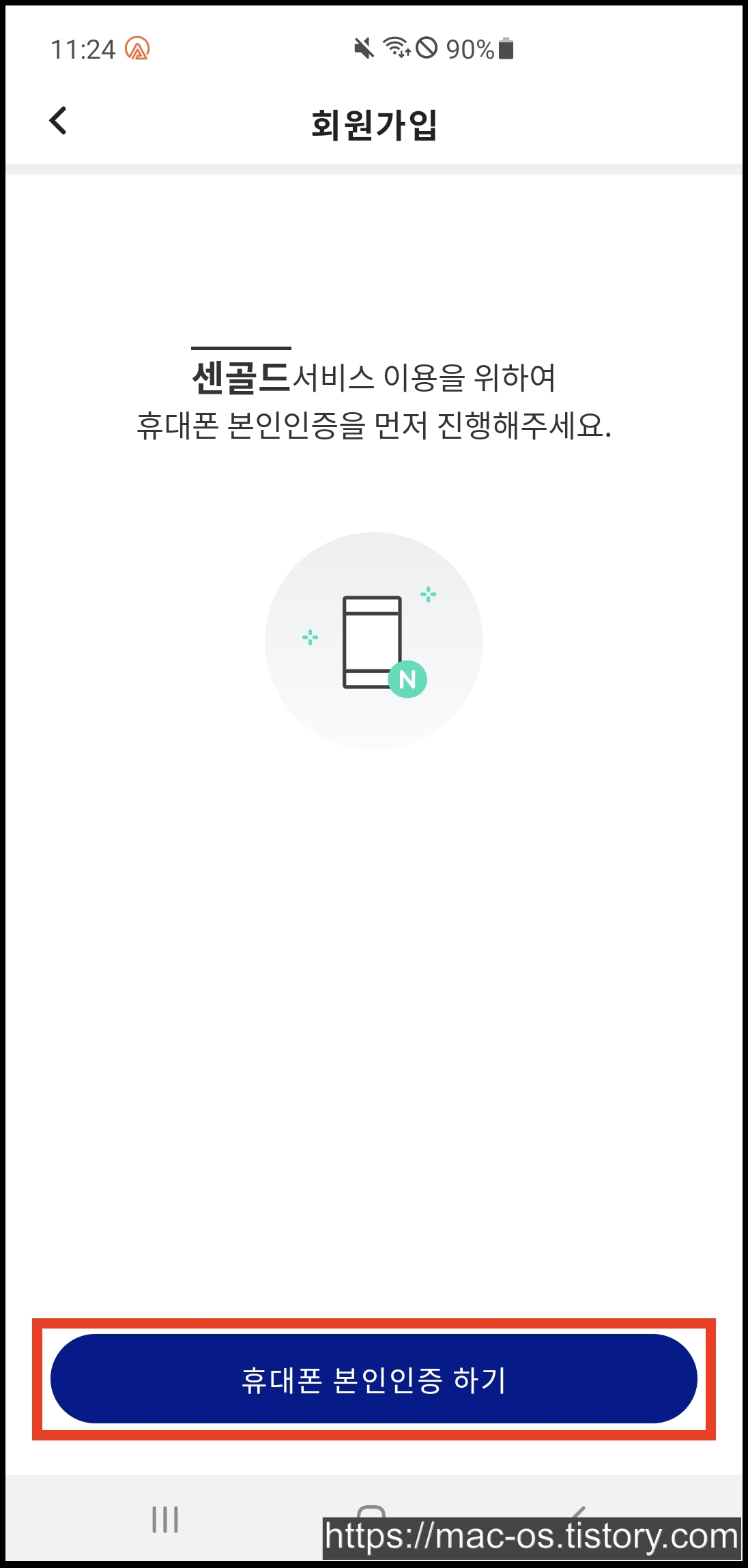 - 센골드 회원가입 과정 중 휴대폰 인증 진행