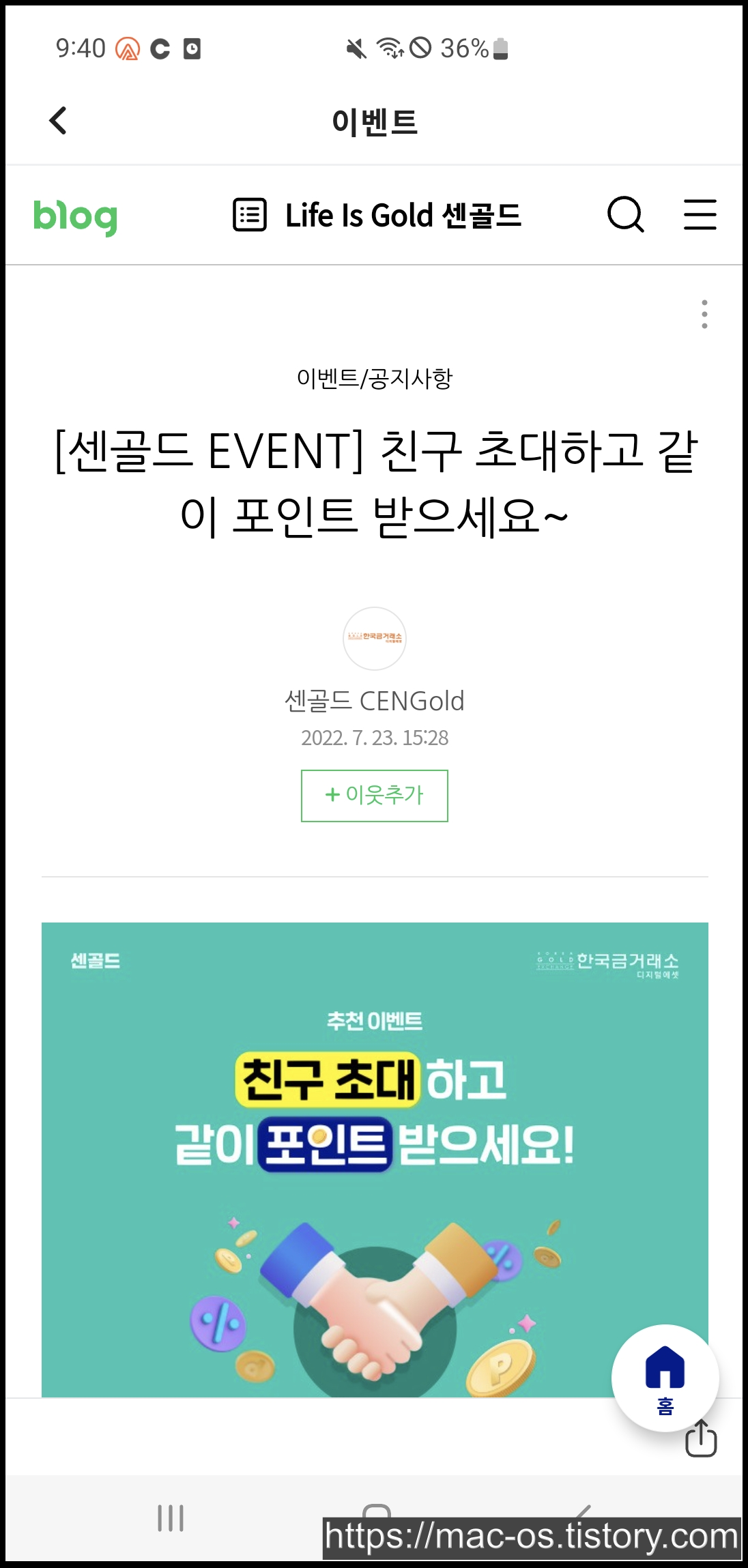 센골드 친구초대 이벤트