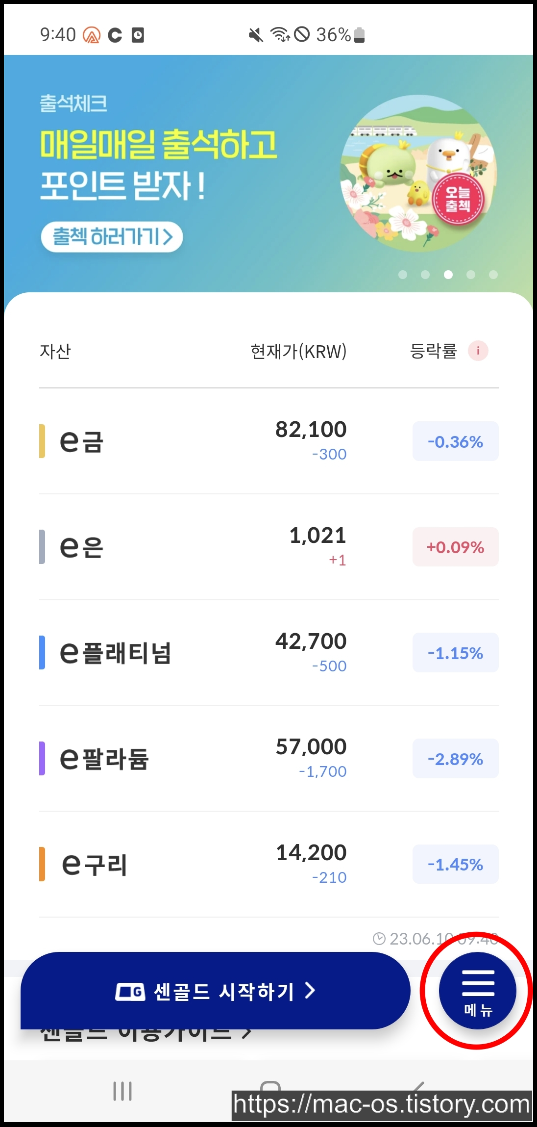 센골드 앱 설치 바로가기 주소
