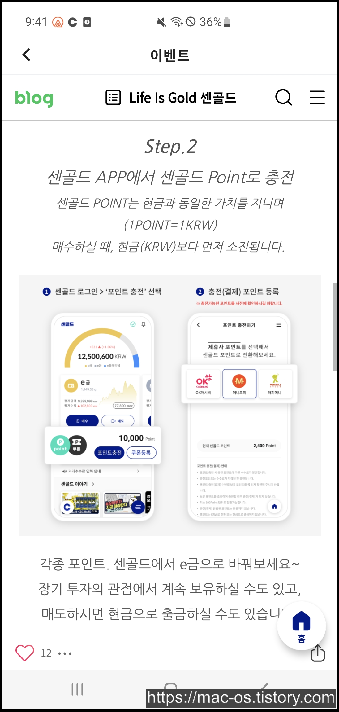 각종 포인트는 센골드에서 e금으로 바꿀 수 있으며 장기투자의 관점에서 계속 보유할 수도 있고 매도하면 현금으로 출금도 가능하다.