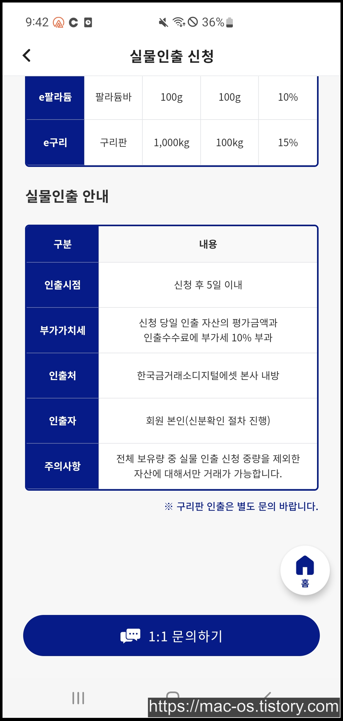 e금의 경우 최소인출중량이 100g이기 때문에 최소 820만원, e은은 1000만원 정도에 달하는 g이 있어야 실물로 받을 수 있다. 다만 꼭 실물로 인출할 필요는 없다.