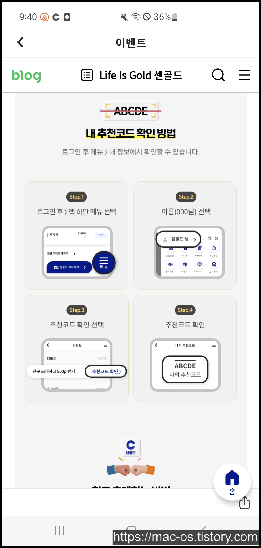 센골드 추천인코드 입력 방법