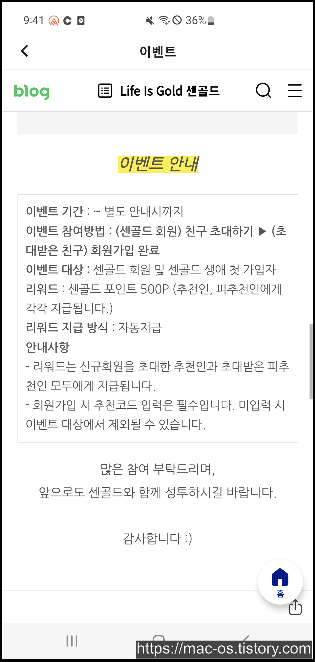센골드 추천코드를 입력하고 가입하면 신규회원에게 500포인트 지급하니 꼭 입력할 것!