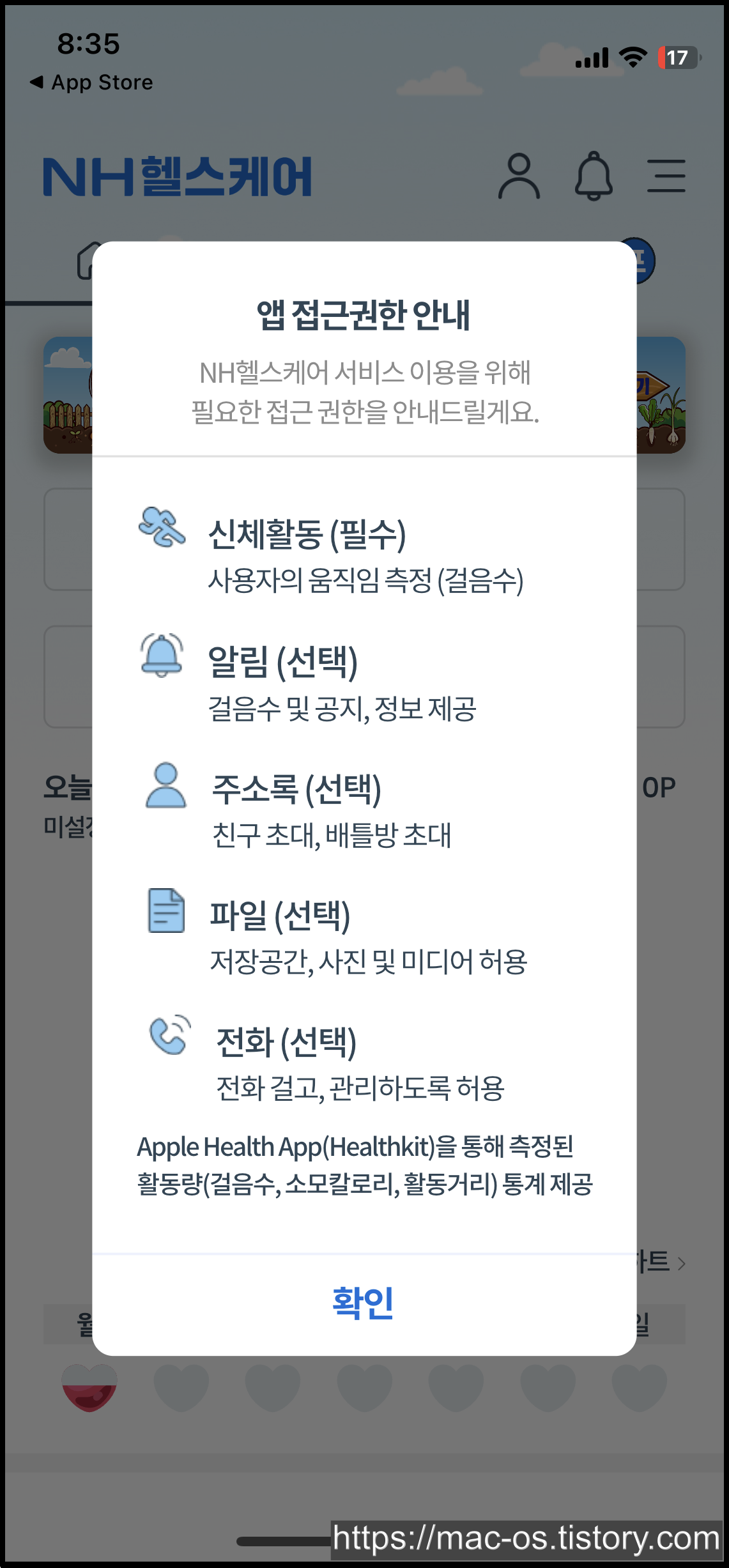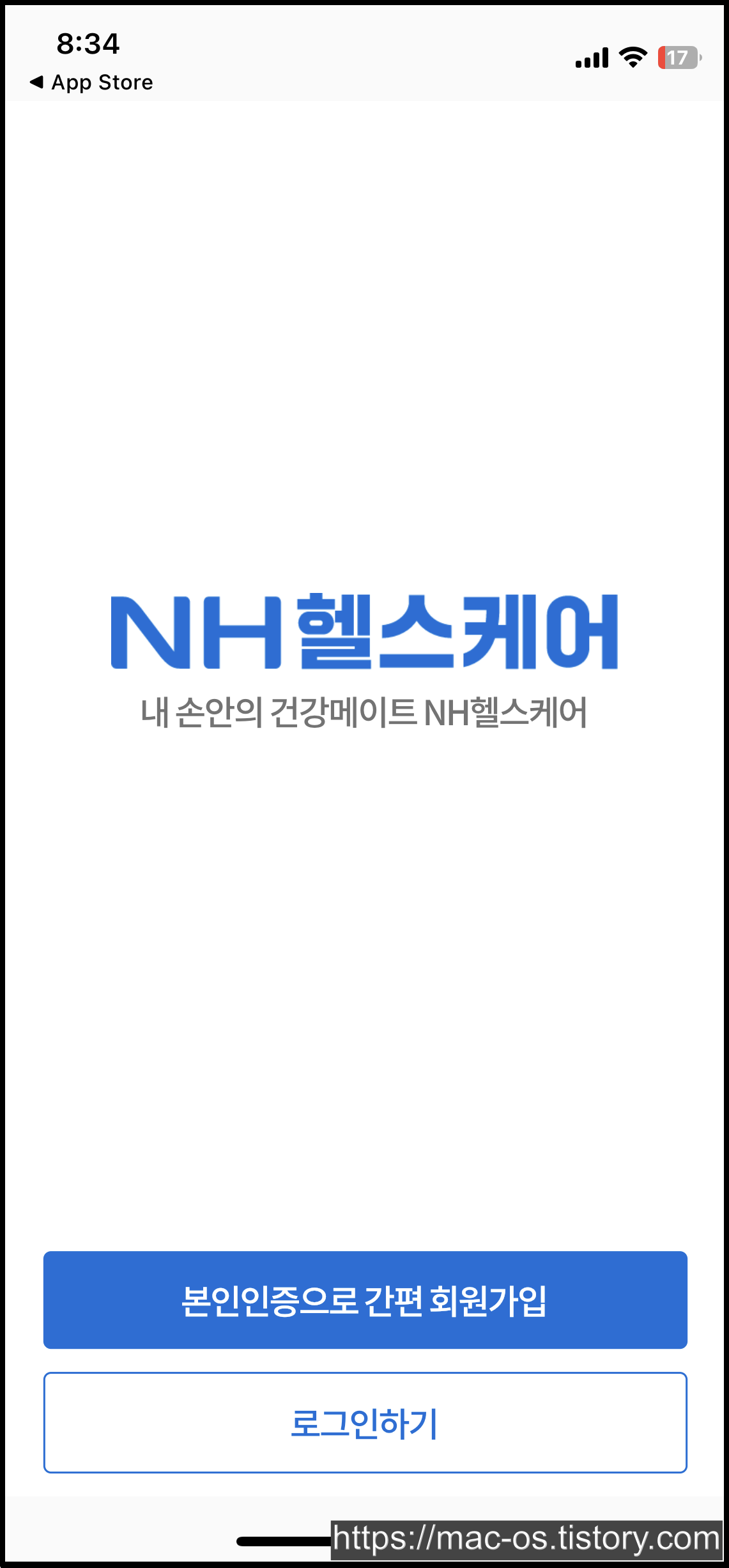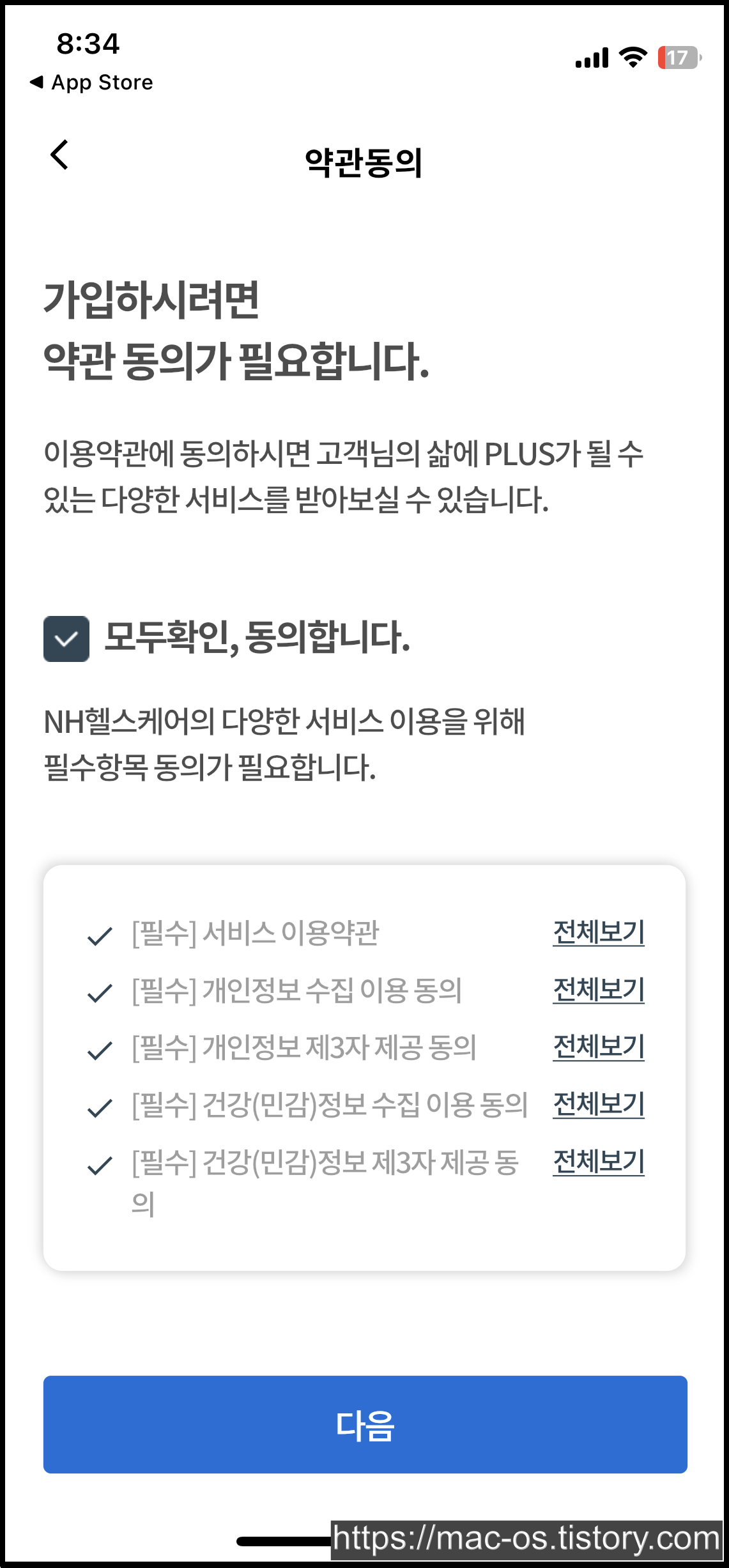 위에 있는 친구초대 링크를 통해 앱스토어에서 NH헬스케어 앱 설치 후 실행