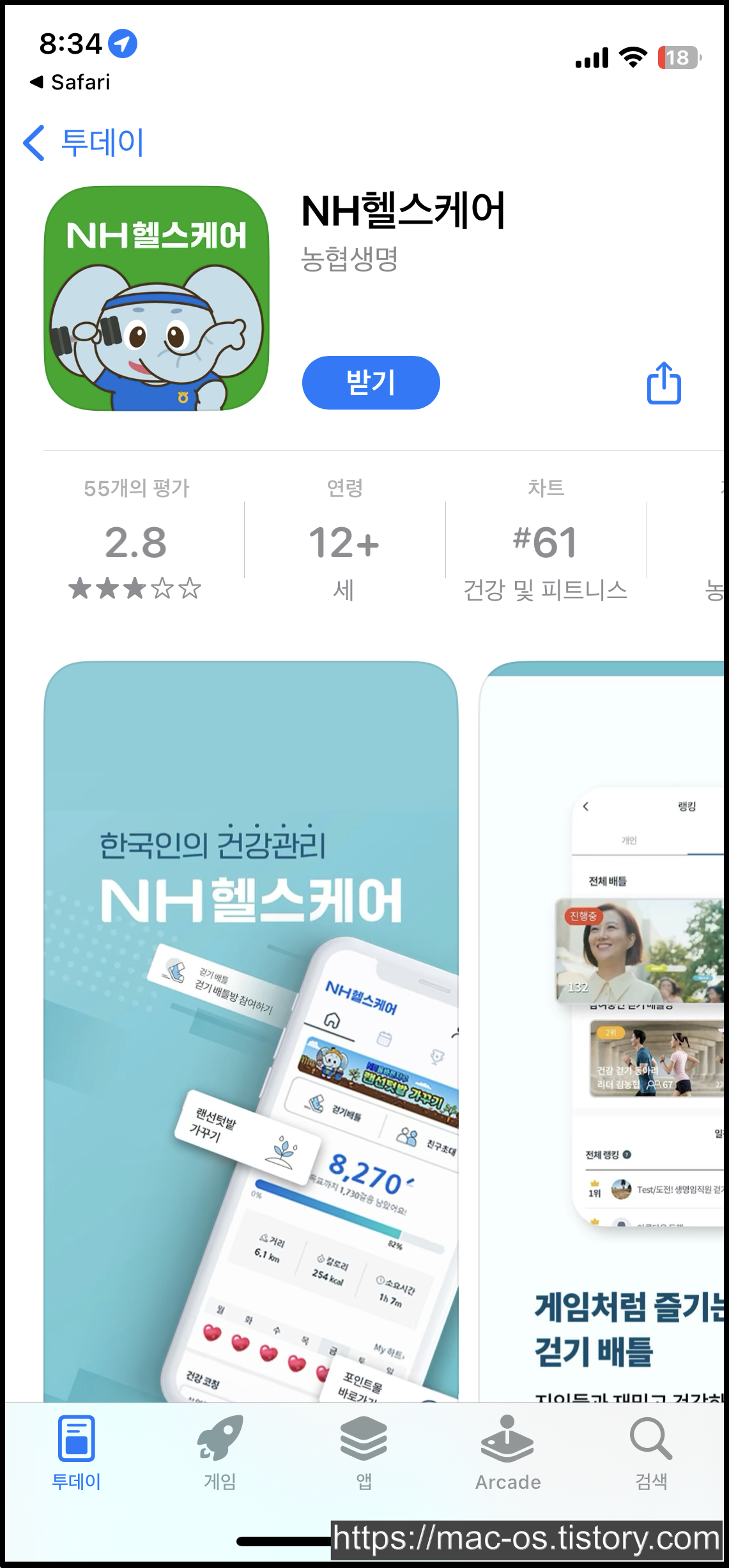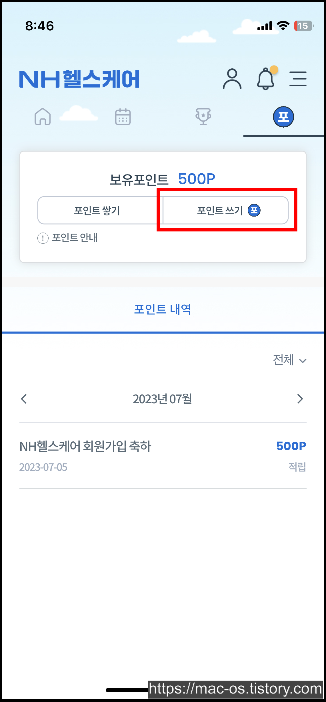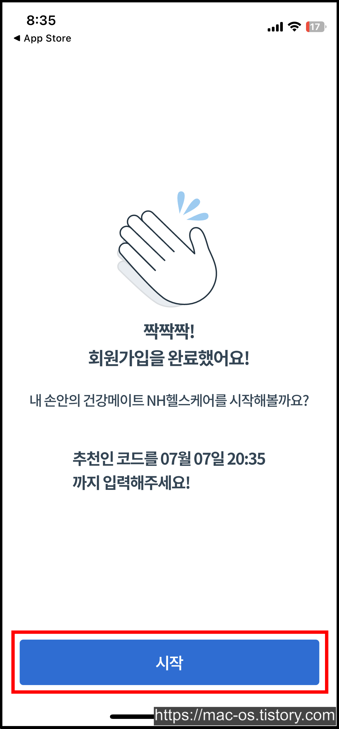 위에 있는 친구초대 링크를 통해 앱스토어에서 NH헬스케어 앱 설치 후 실행