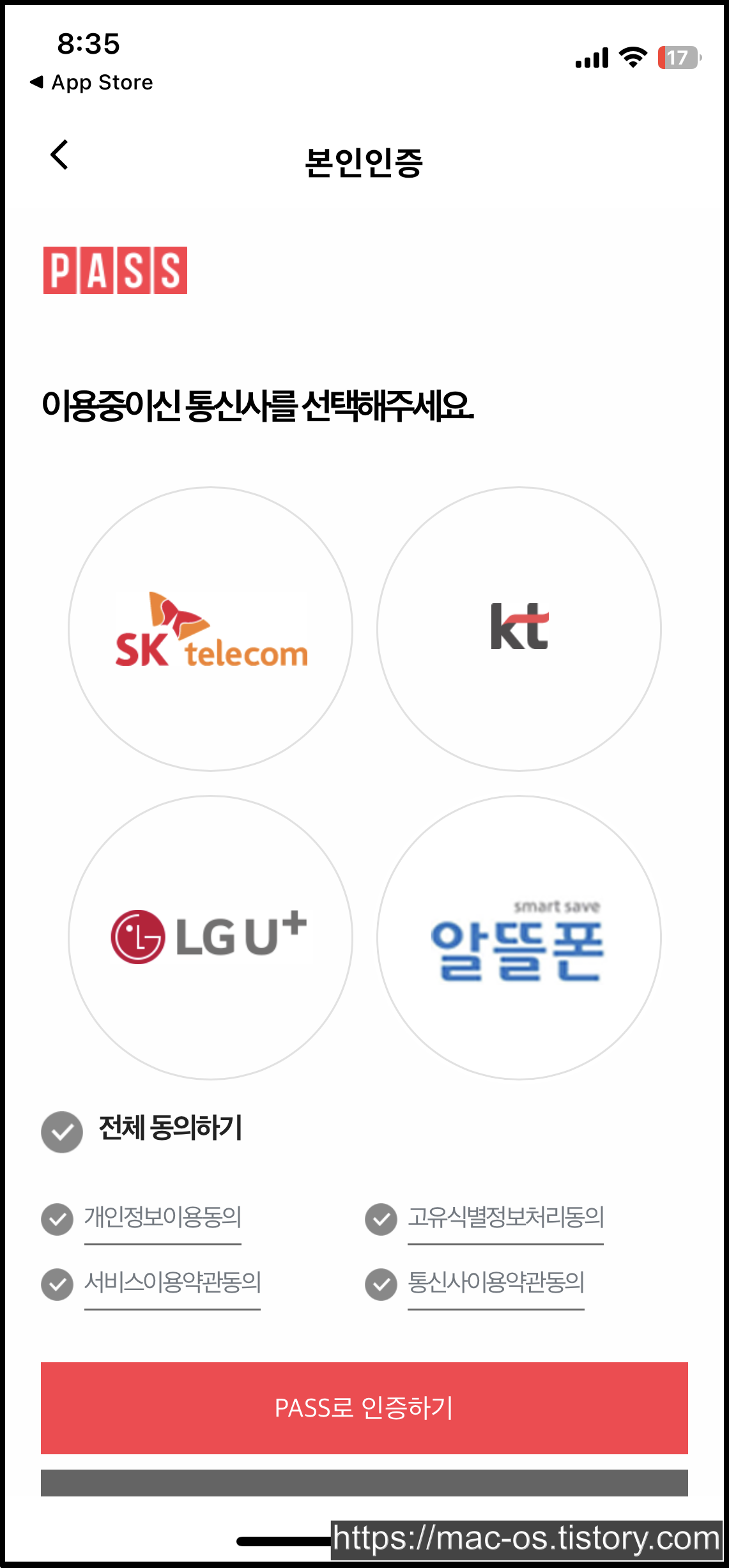 약관에 동의하고 휴대폰 인증으로 회원가입 진행