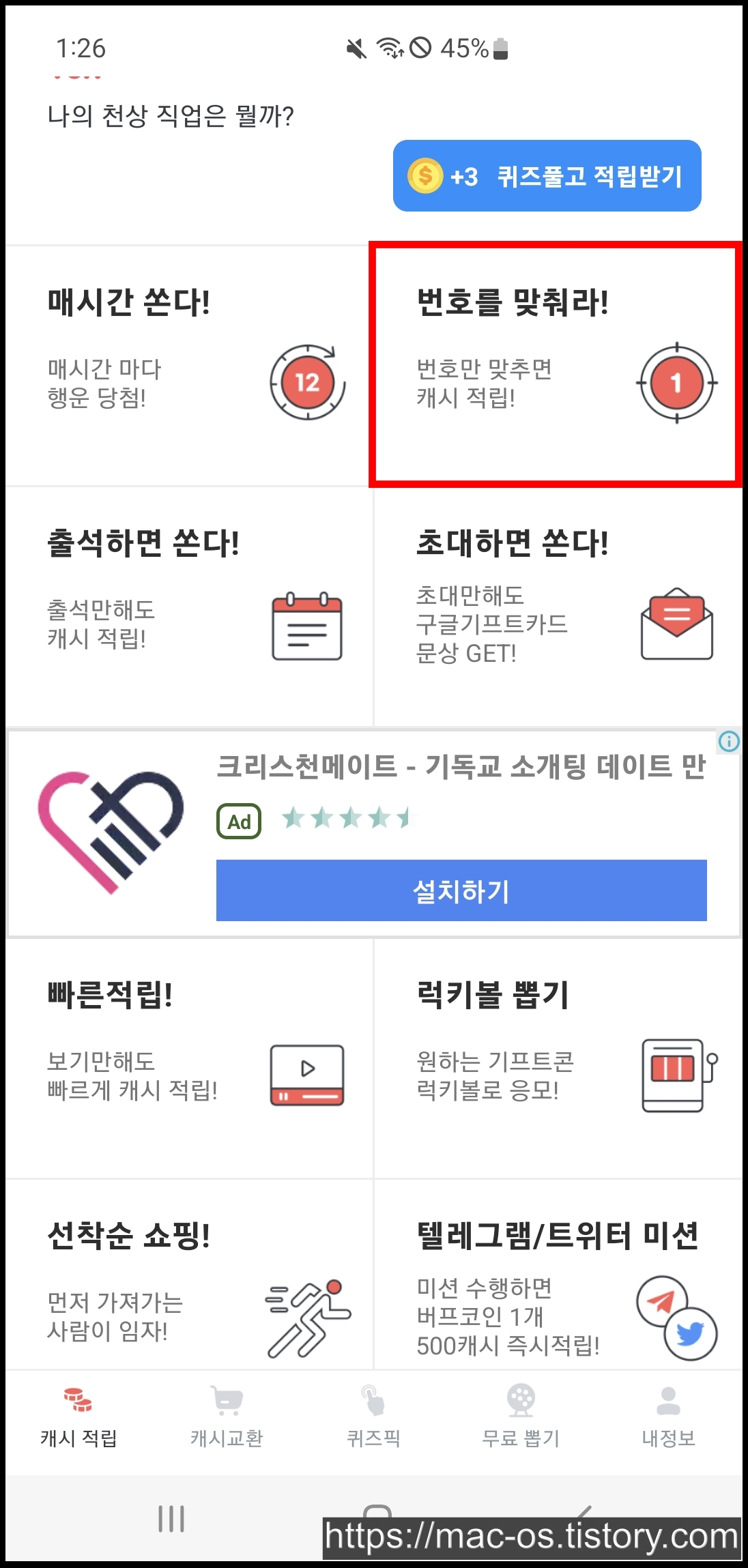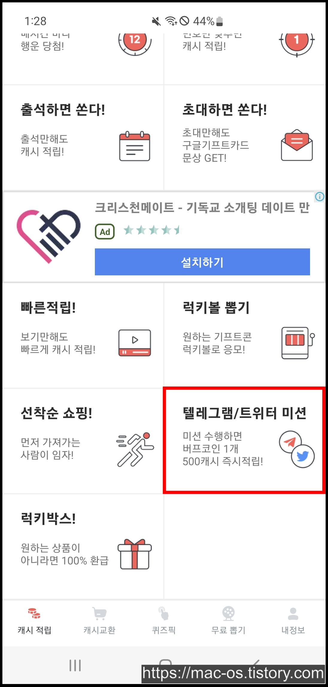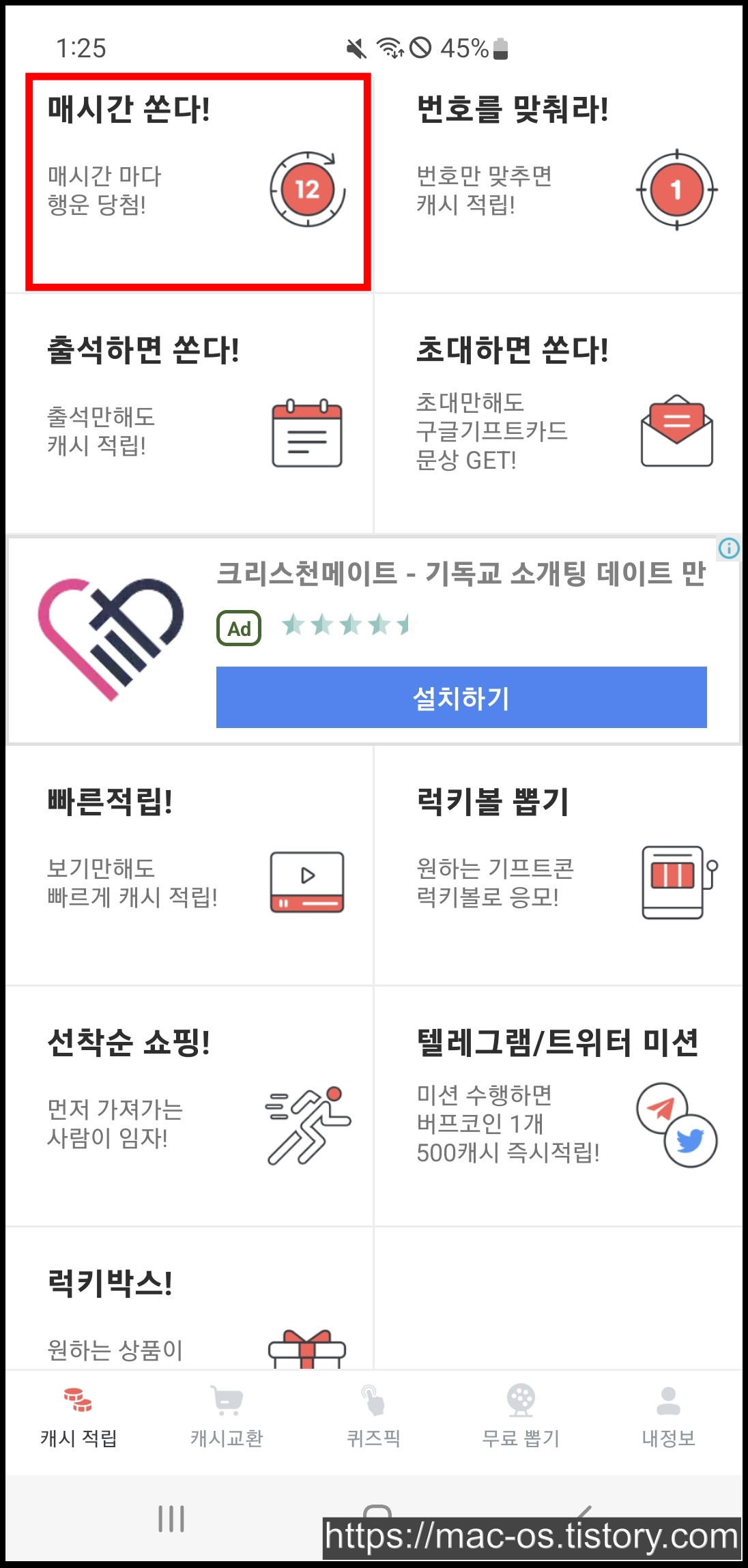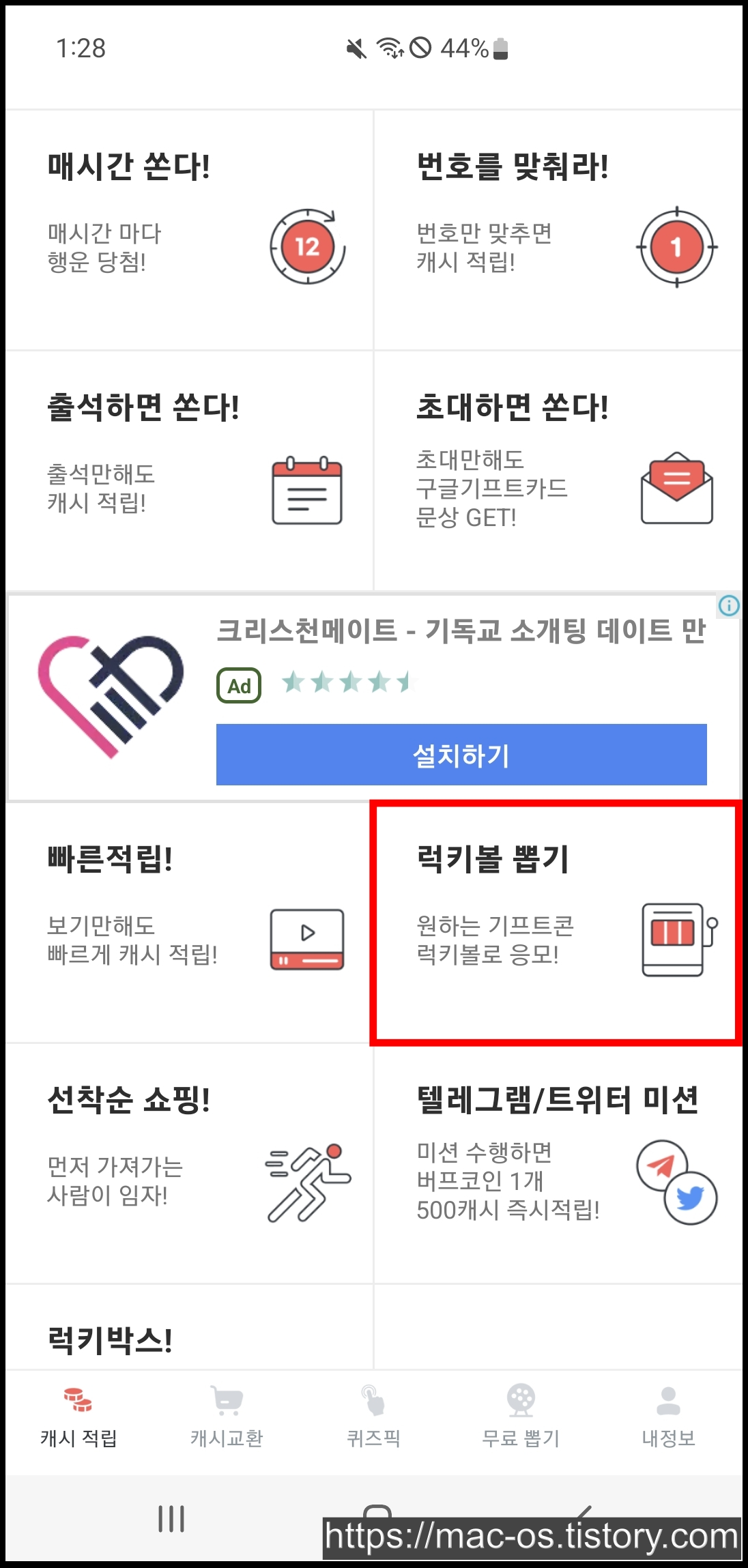 구글 플레이 스토어에서 캐시픽 앱을 설치하고 내정보로 이동한다.