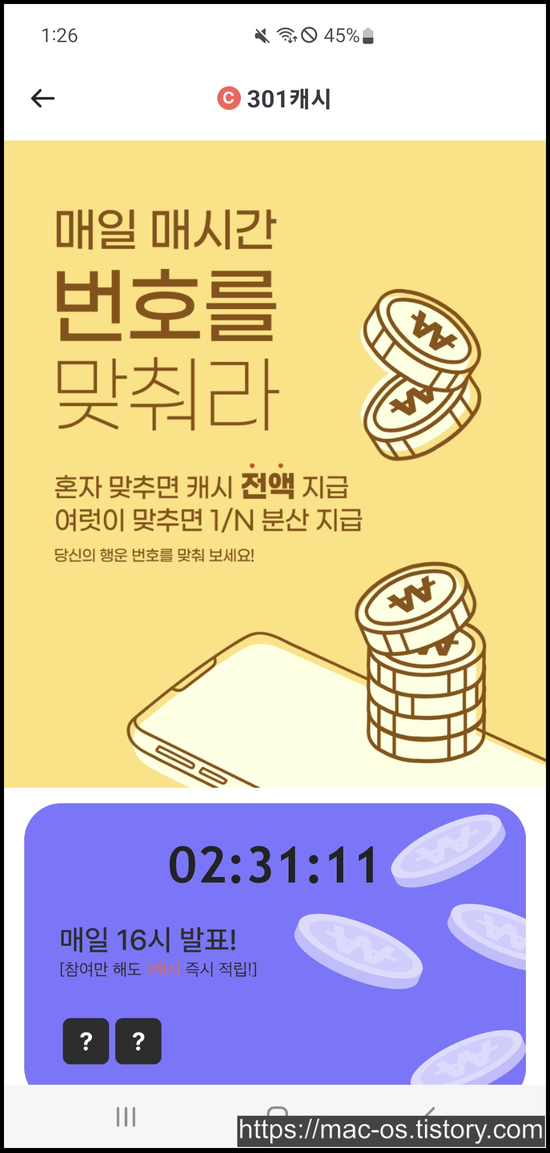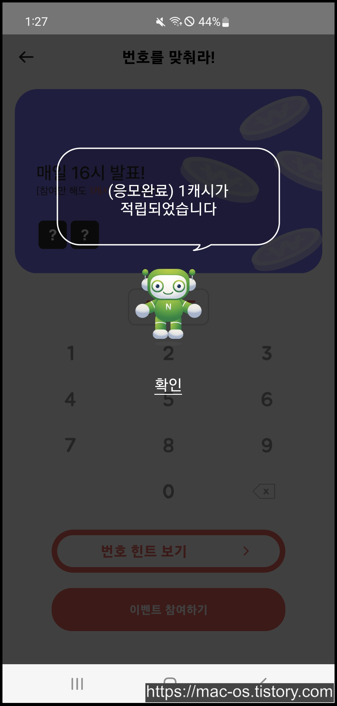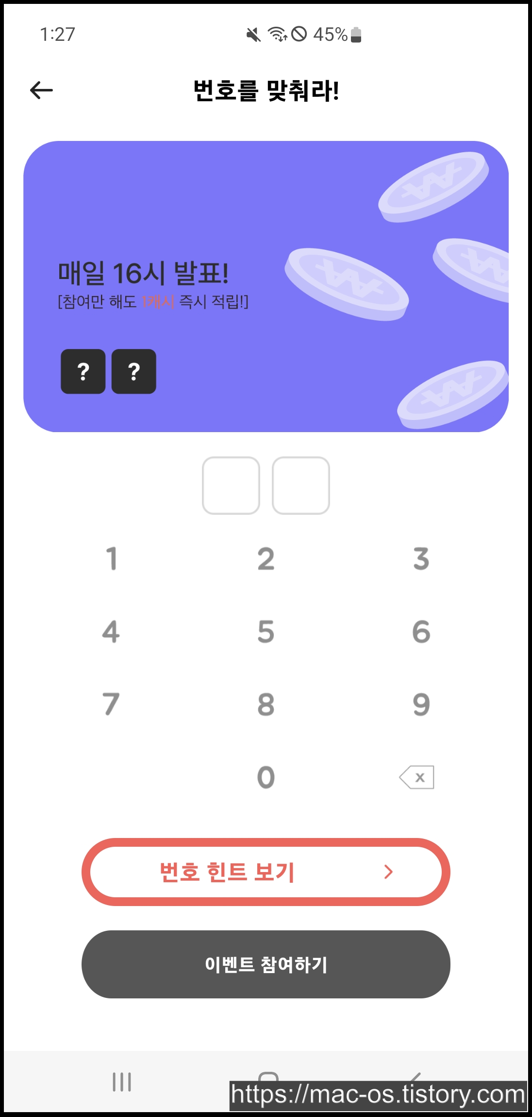 번호를 맞춰라! 에서는 제일 상단에 있는 배너를 누르고 아무 숫자나 입력하면 응모가 된다.
