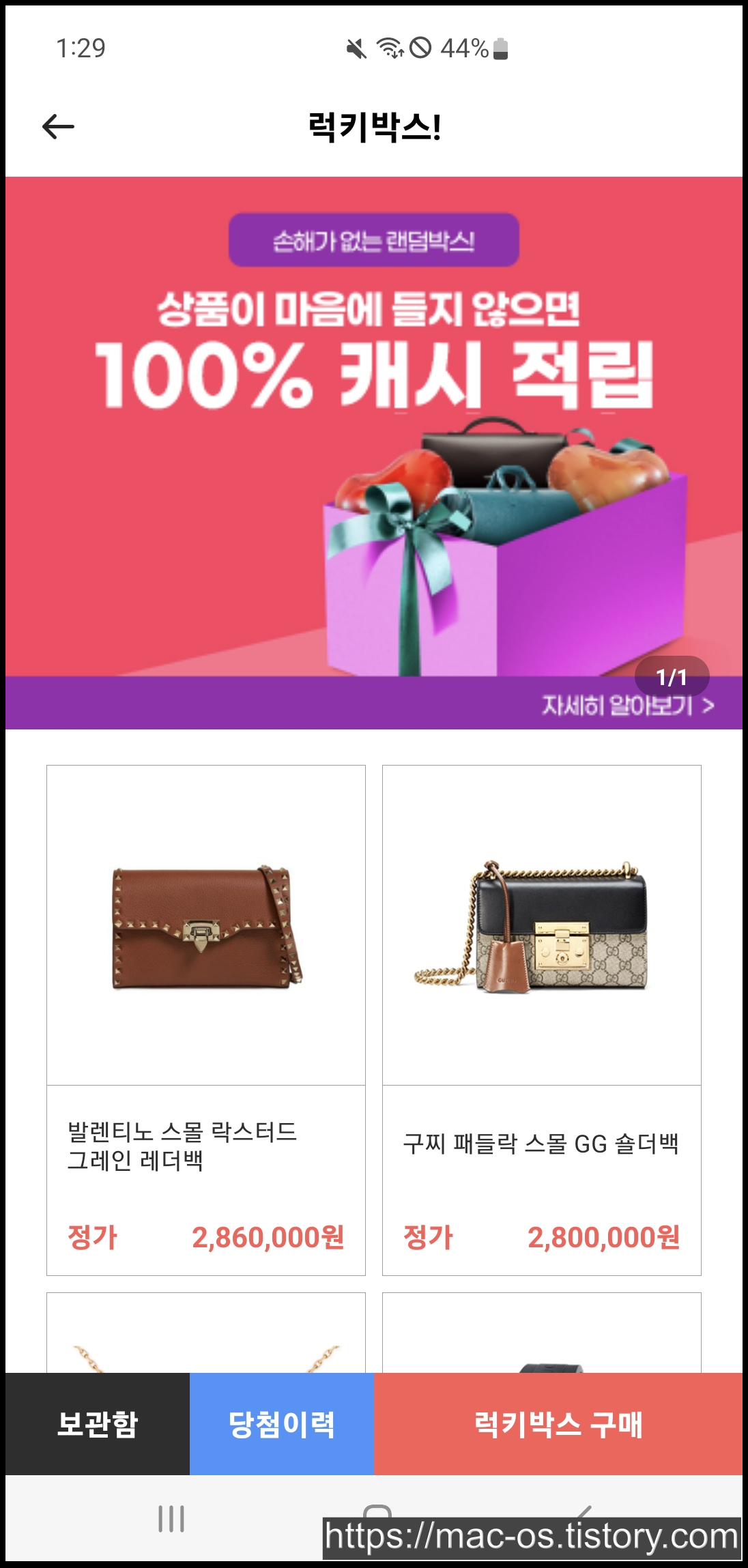 럭키박스에서는 고가의 상품을 랜덤으로 구매할 수 있는데.. 럭키박스 가격이 얼마인지는 모르겠다.