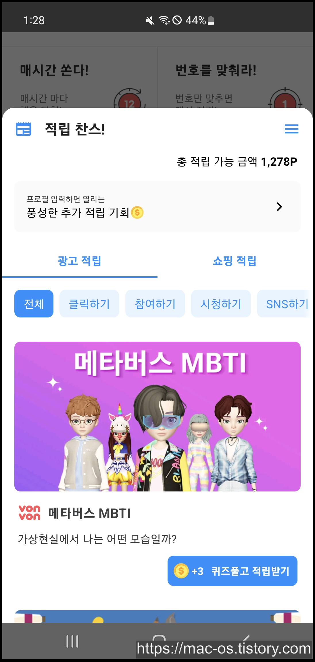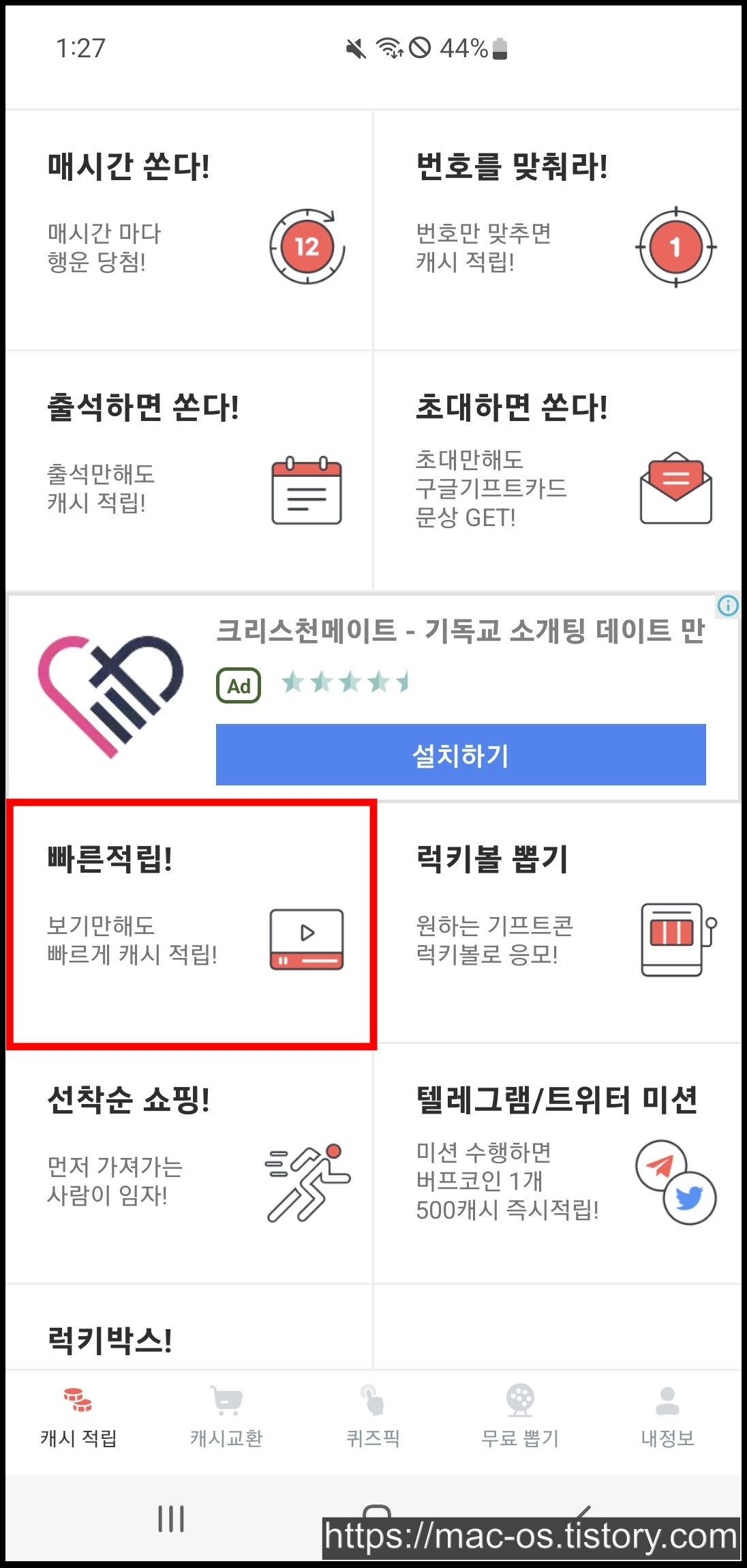 빠른적립은 광고 충전소로 광고적립과 쇼핑적립이 있다.
