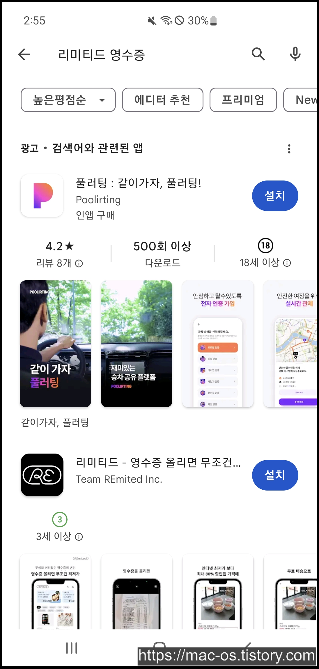 리미티드는 구글 플레이 스토어에서 리미티드 영수증을 검색하면 설치할 수 있다. 리미티드라고만 검색하면 안나오는 것 같음. 귀찮으면 위에 있는 설치링크를 눌러서 이동해도 된다.