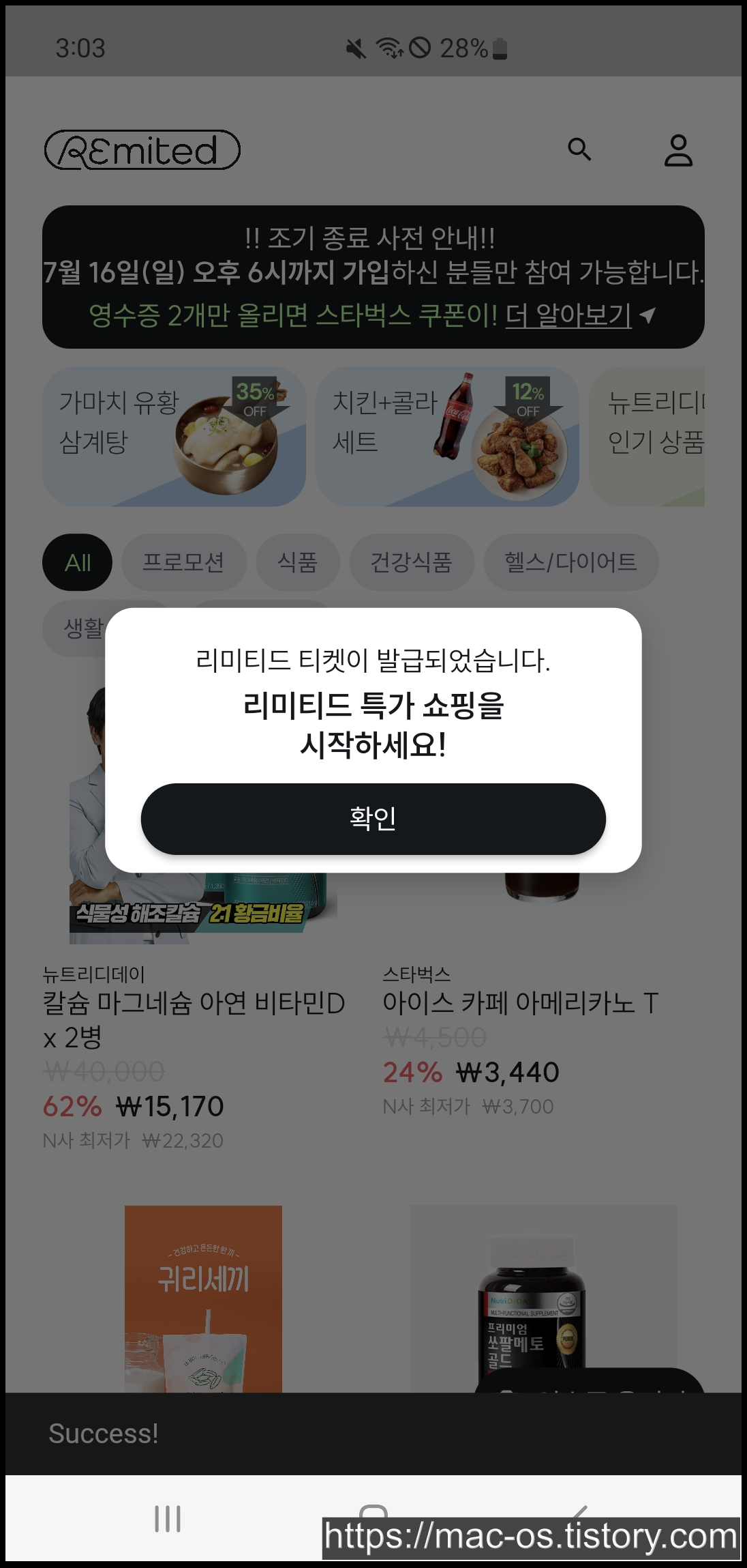 아직 정확한 구조는 잘 모르겠는데, 리미티드 앱의 홈 화면을 보면 여러 상품을 좀 저렴하게 판매하고 있다. 아무래도 리미티드 티켓을 사용하여 이런 할인 혜택을 누릴 수 있는 듯해보인다.