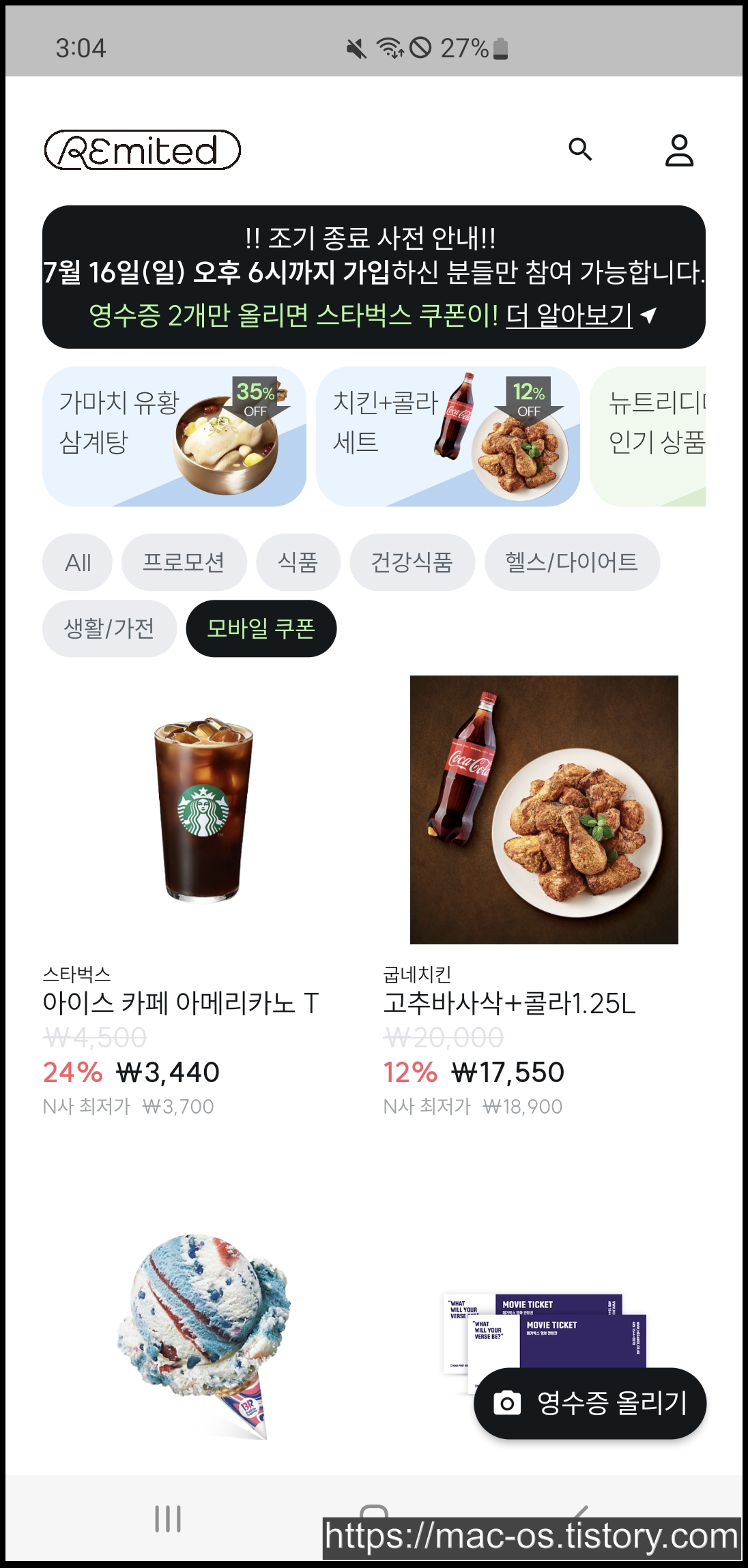 무심코 버려 왔던 영수증의 변신. 영수증 올리면 무조건 최저가, 리미티드