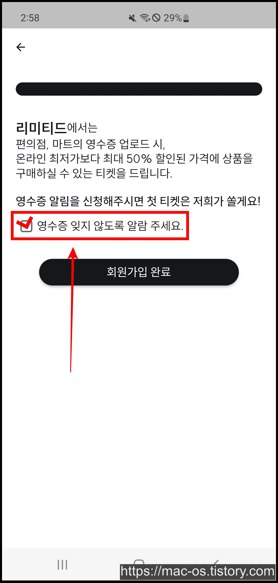 - 회원가입할 때 영수증 알람에 체크하고 가입