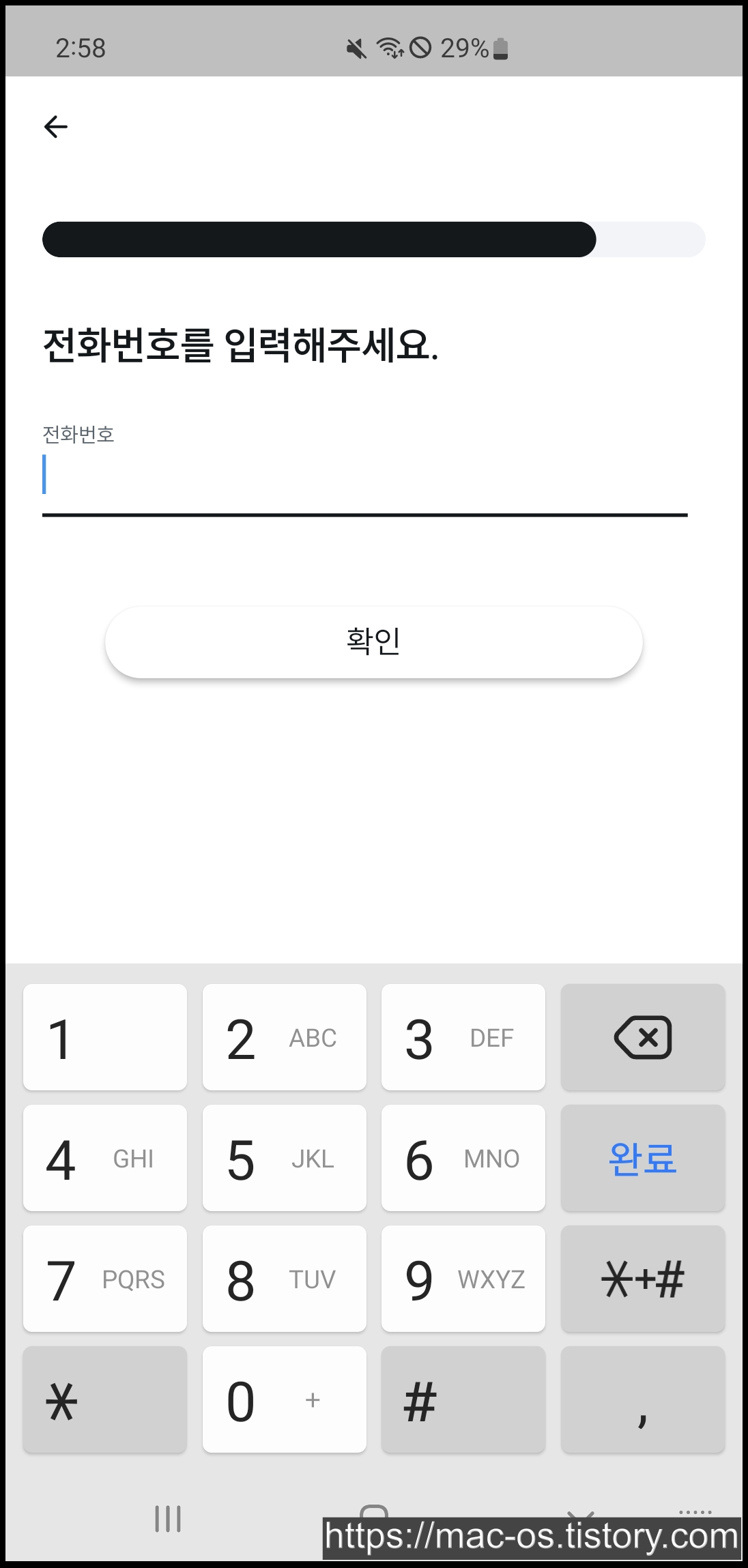 전화번호를 입력하고 영수증 알람에 체크한다.