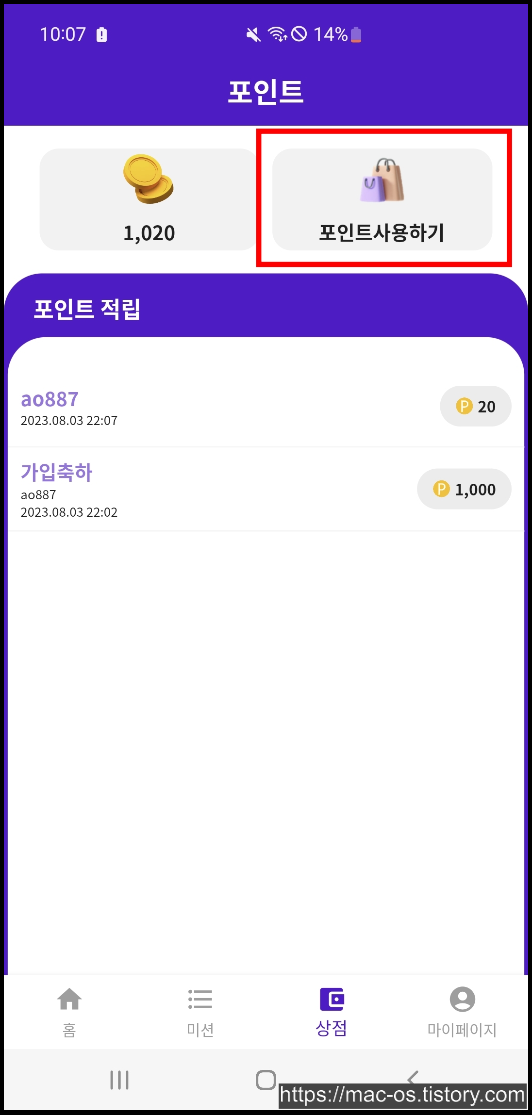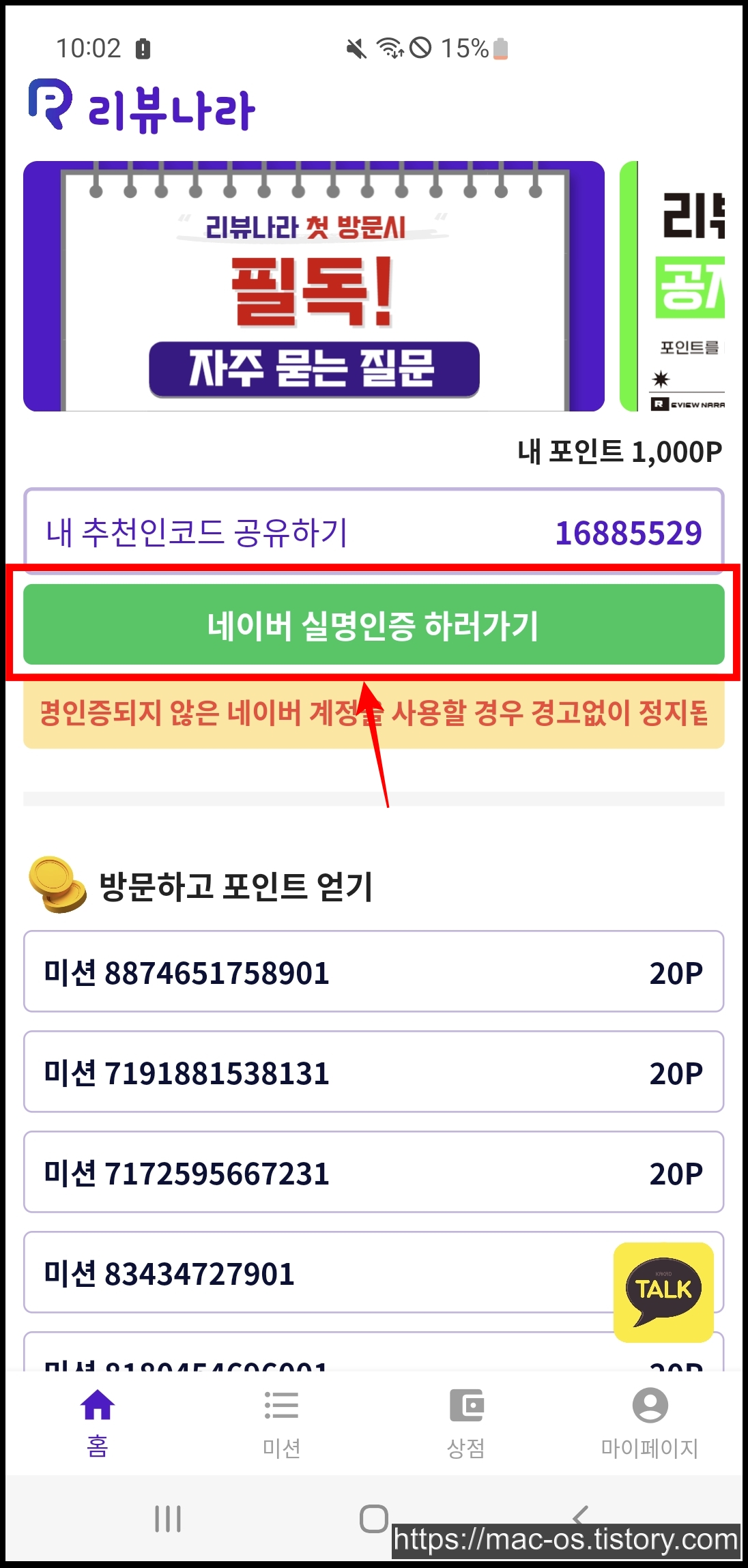 이렇게 미션 1개를 완료하는 데에는 약 5초 정도 걸리는데, 20포인트를 준다. 미션은 매일 오전 0시에 초기화된다고 하니 이 때가 가장 많을 듯.