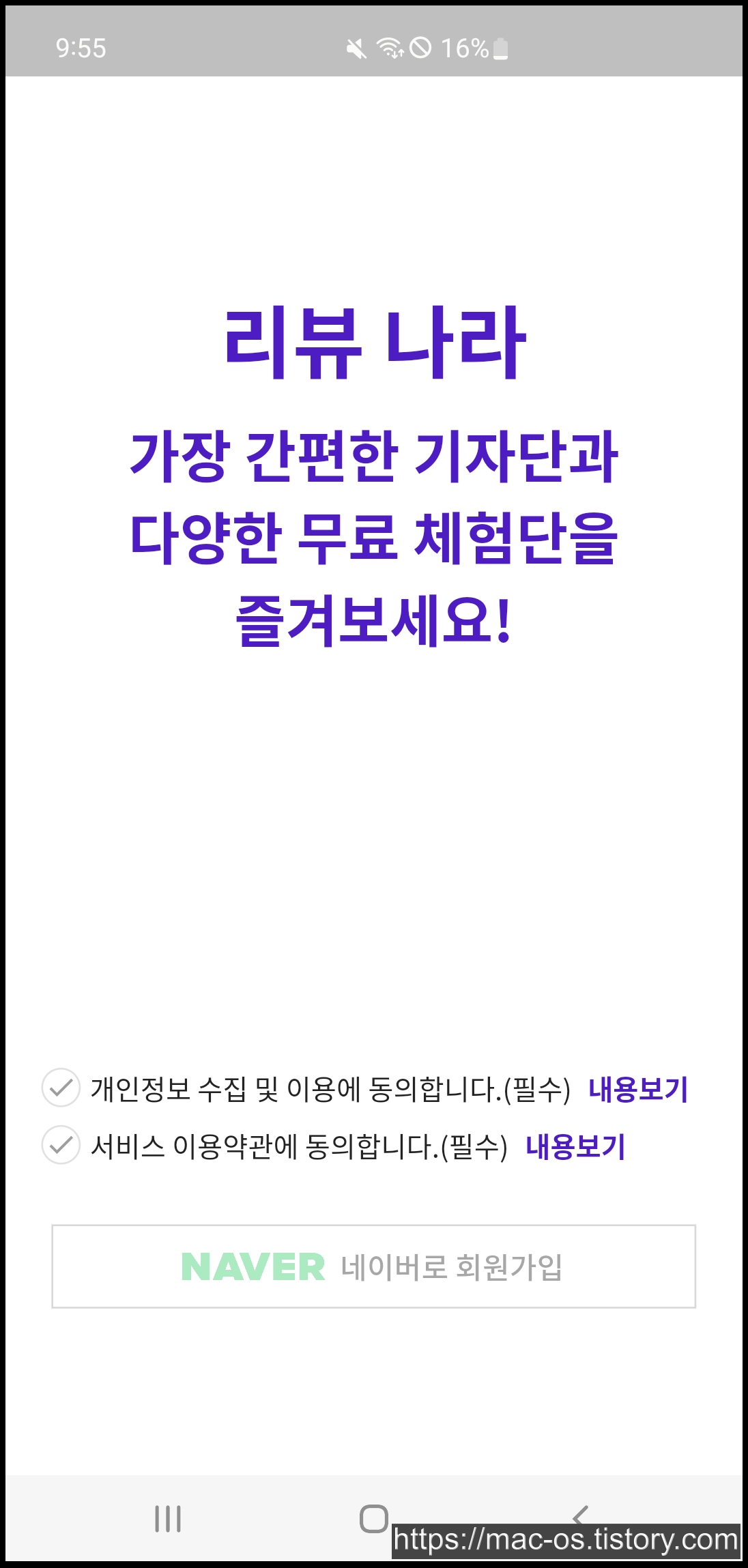 리뷰나라는 네이버 계정으로 로그인하여 회원가입할 수 있다.