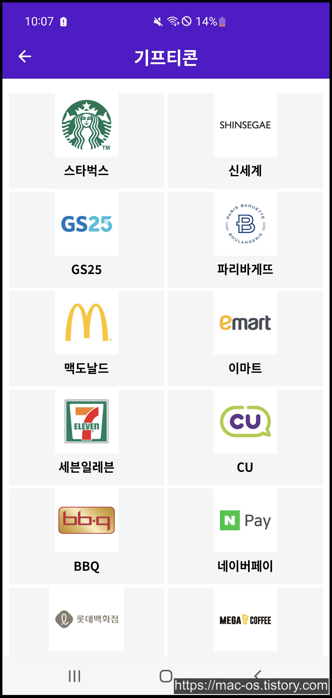 포인트는 기프티콘을 구매하는 용도로 사용할 수 있는데, 2000 포인트부터 쓸 수 있다고 한다.