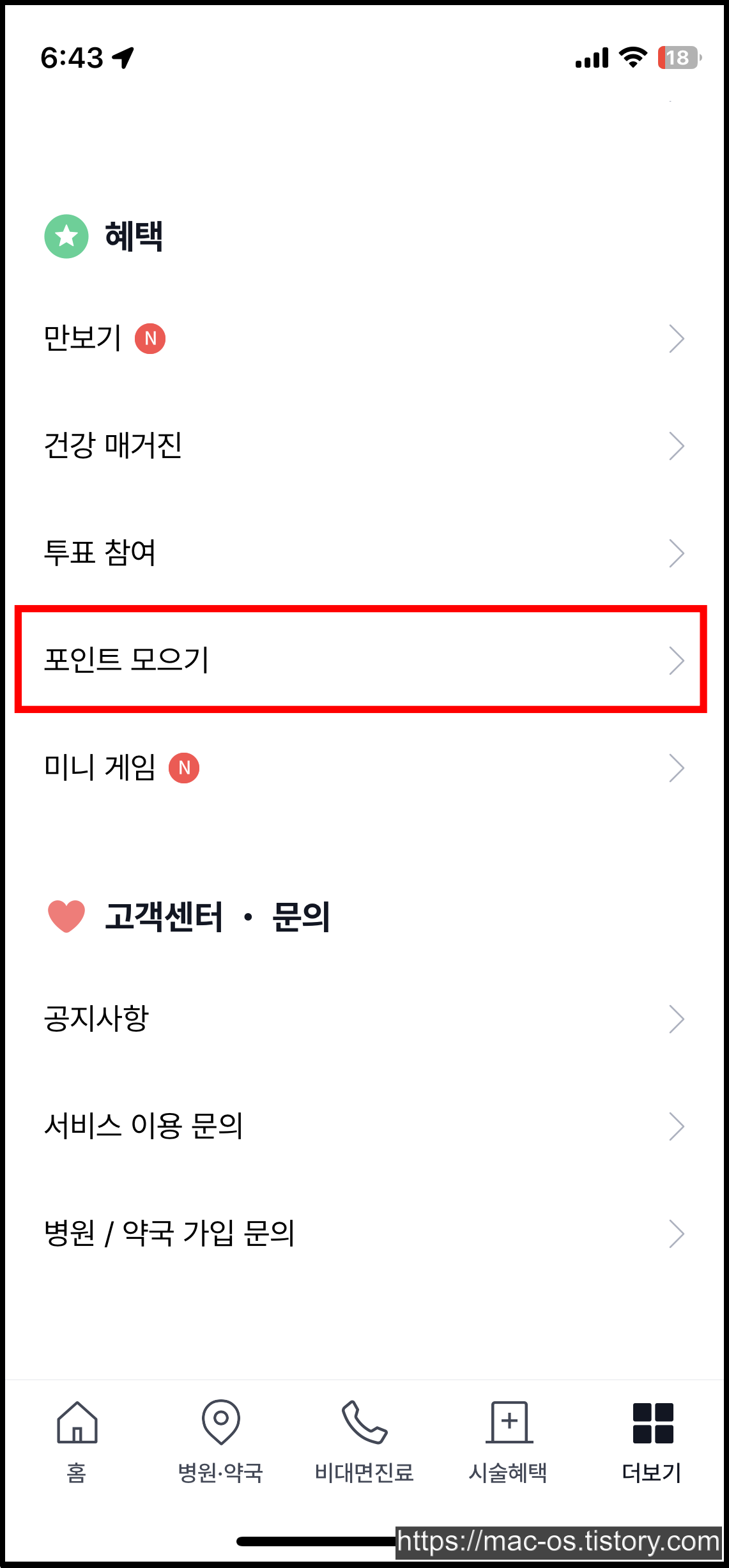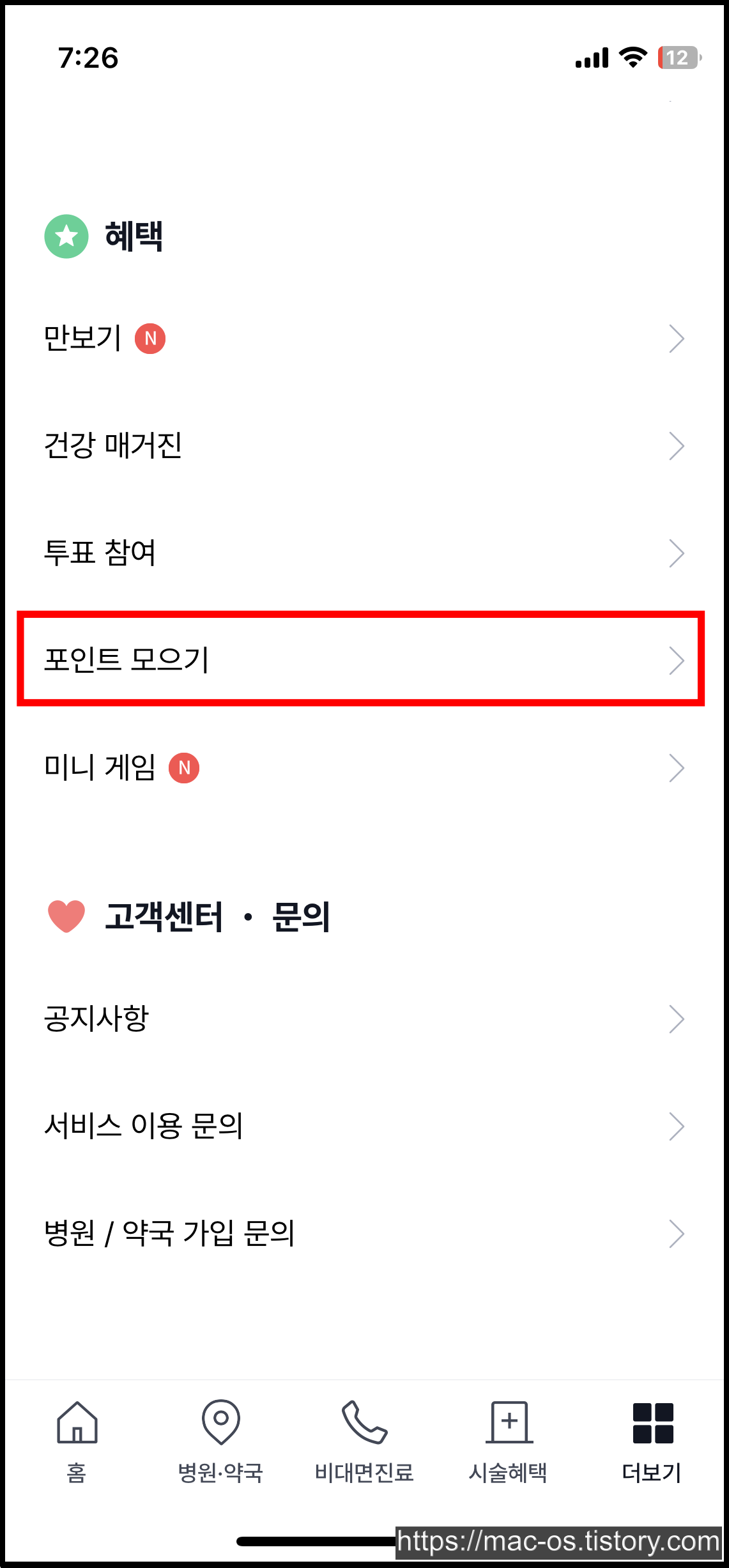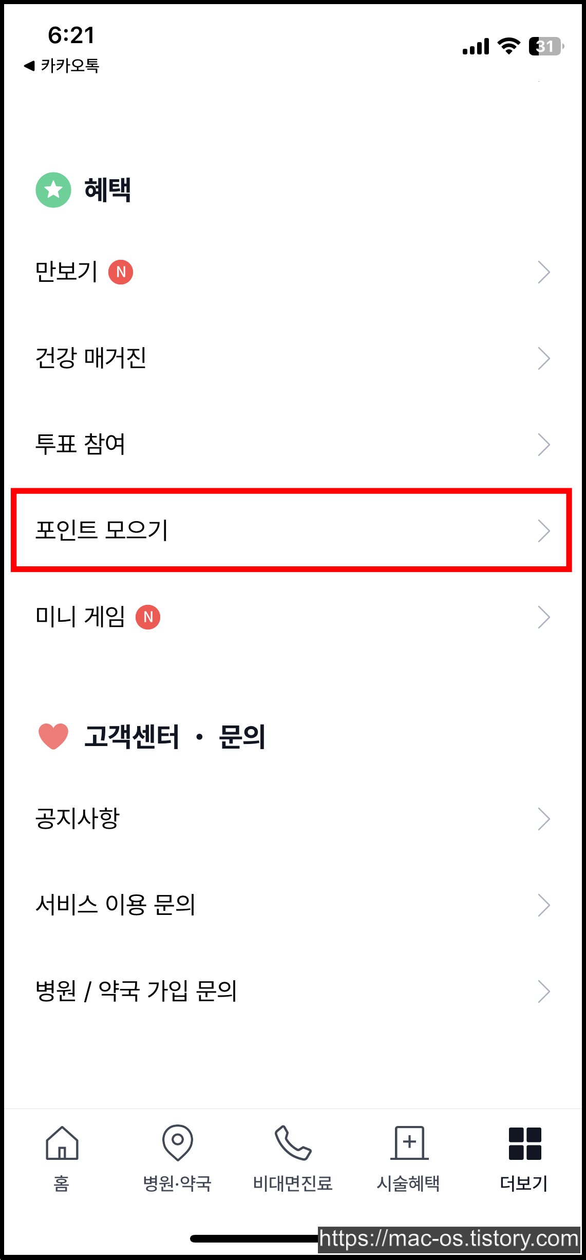 회원가입 후 [더보기] → [포인트 모으기]로 이동한다.