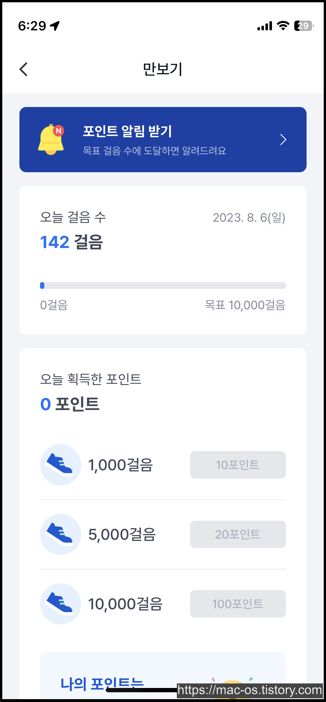 따라서 매일 얻을 수 있는 230포인트는 46원 정도의 가치를 지니며, 한달 31일동안 1만보를 걷고 출석체크를 하면 1426원 정도 버는 셈이 된다.