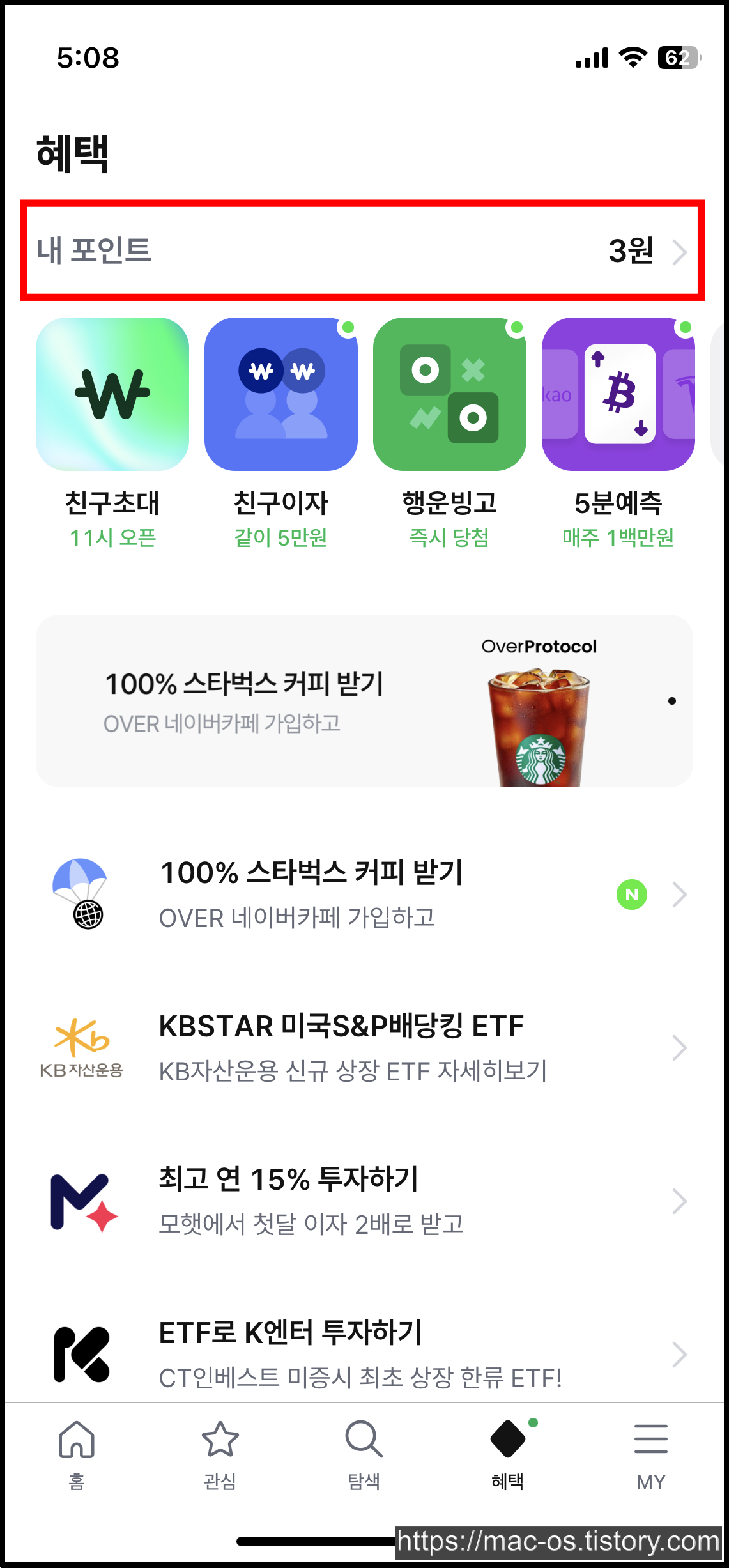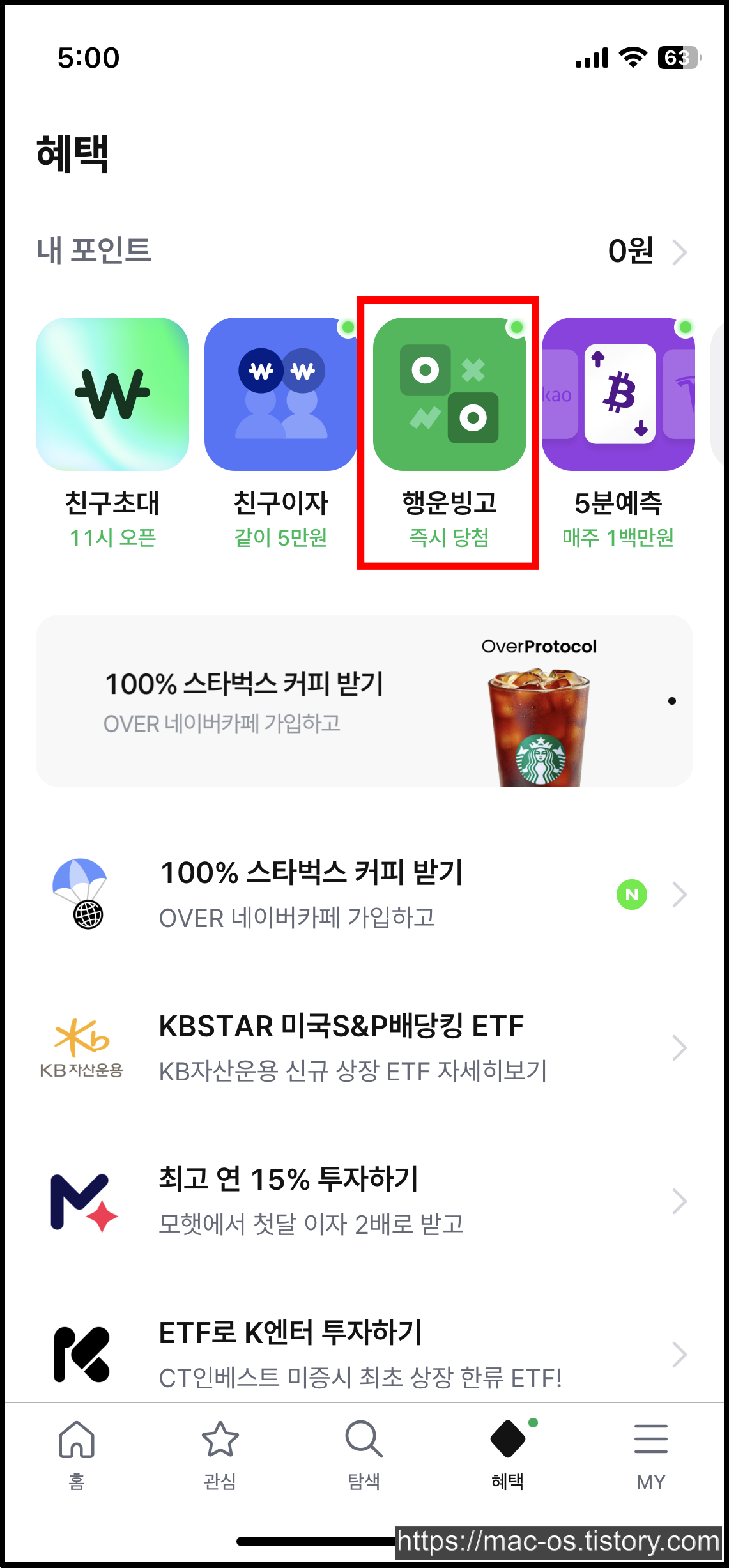 - 친구초대, 친구이자, 행운빙고, 5분예측 등과 같은 서비스를 통해 소소한 앱테크까지 가능함