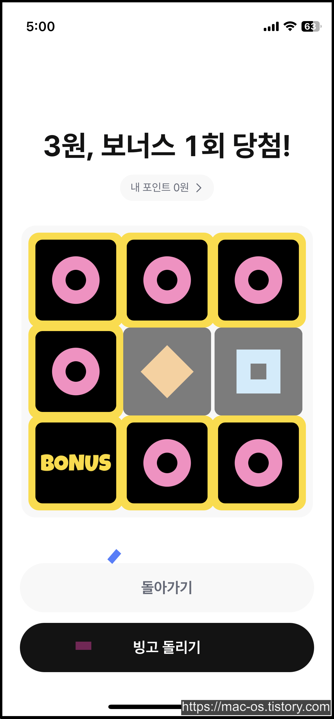 대충 보니 1~20원 정도 주는 것 같음. 빙고를 많이 하면 포인트를 조금 더 주는 것 같기도