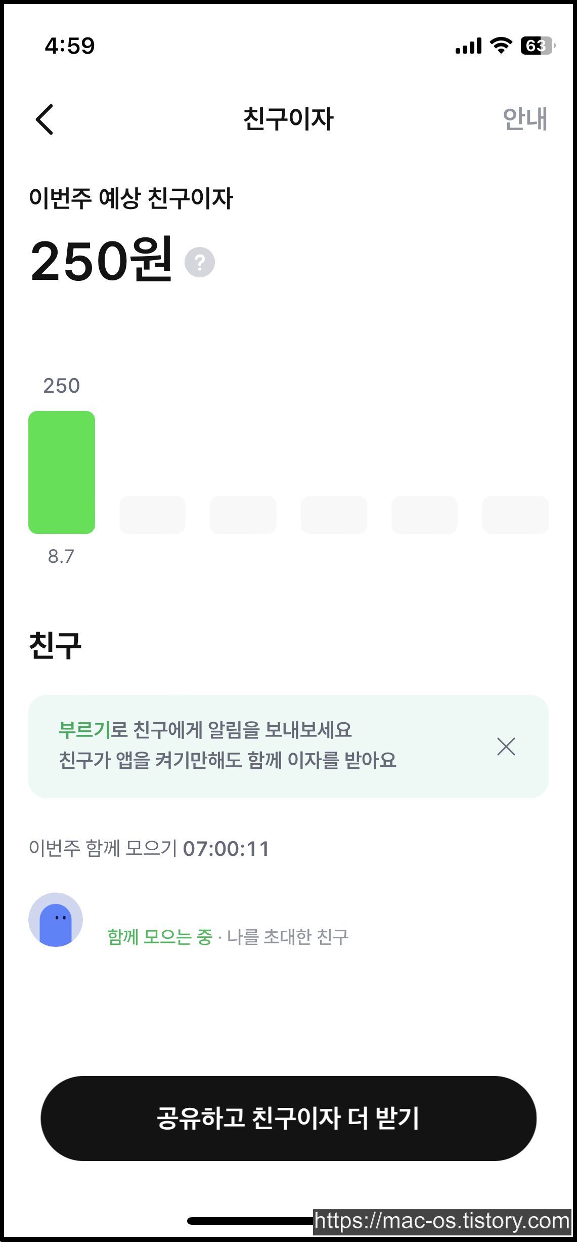 한 주에 최대 5만원까지 받을 수 있고, 이번주 예상 친구이자는 실시간 변동될 수 있음
