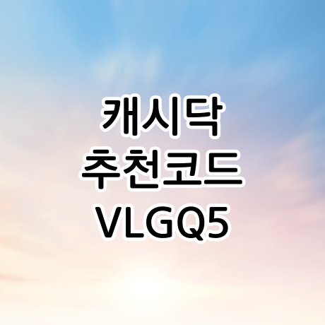 | 캐시닥 앱을 설치하시고 회원가입하는 도중 '추천코드'를 입력하라는 페이지가 등장합니다. 추천코드 입력 란에 "VLGQ5"를 입력하시면 500원이 적립됩니다. 입력하지 않고 넘어가시게 되면 0원으로 시작하게 되니 꼭 입력하시고 가입하세요. |