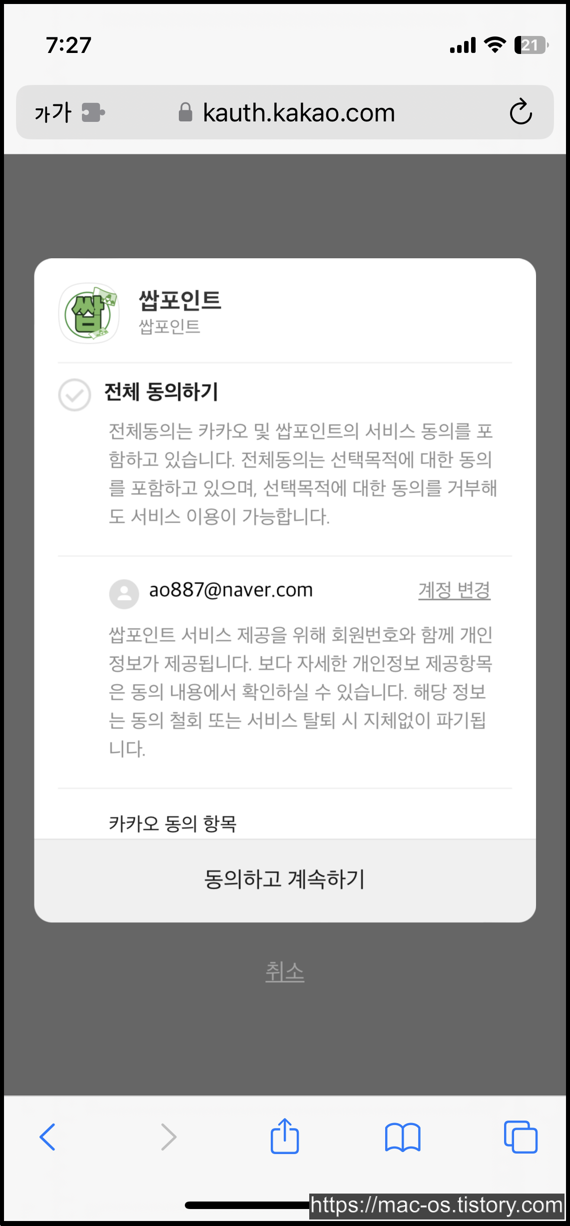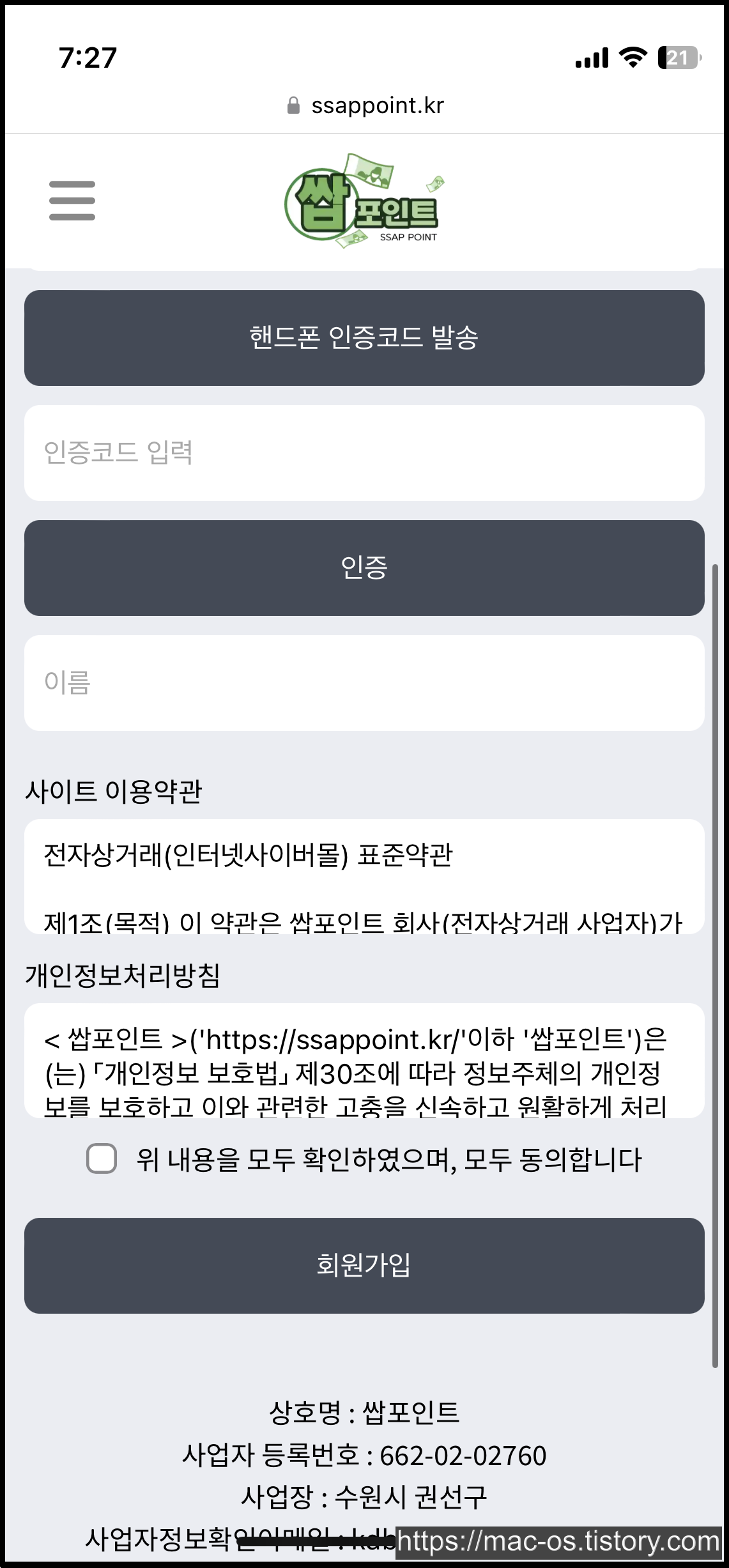 - 쌉포인트 카카오톡 계정으로 로그인하여 가입