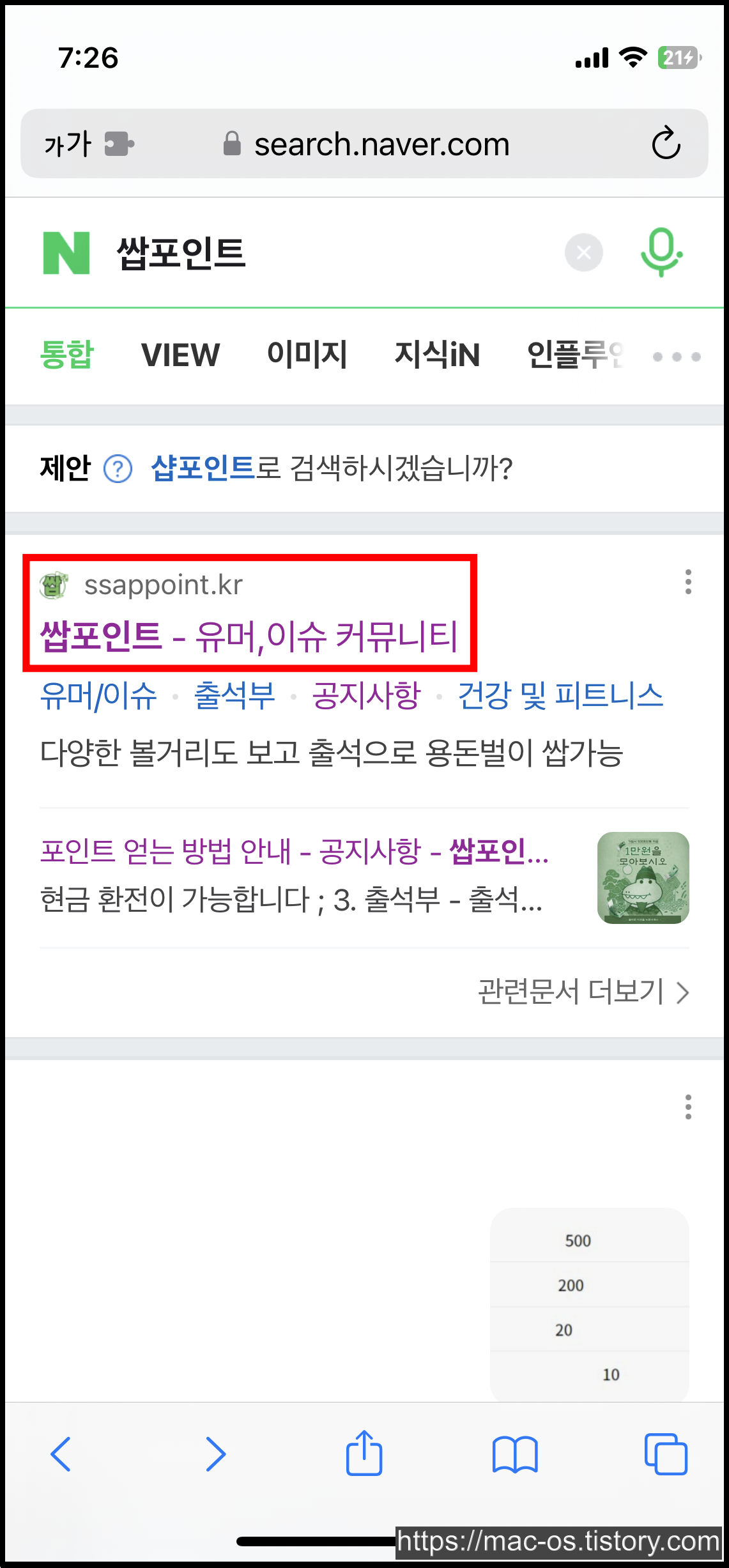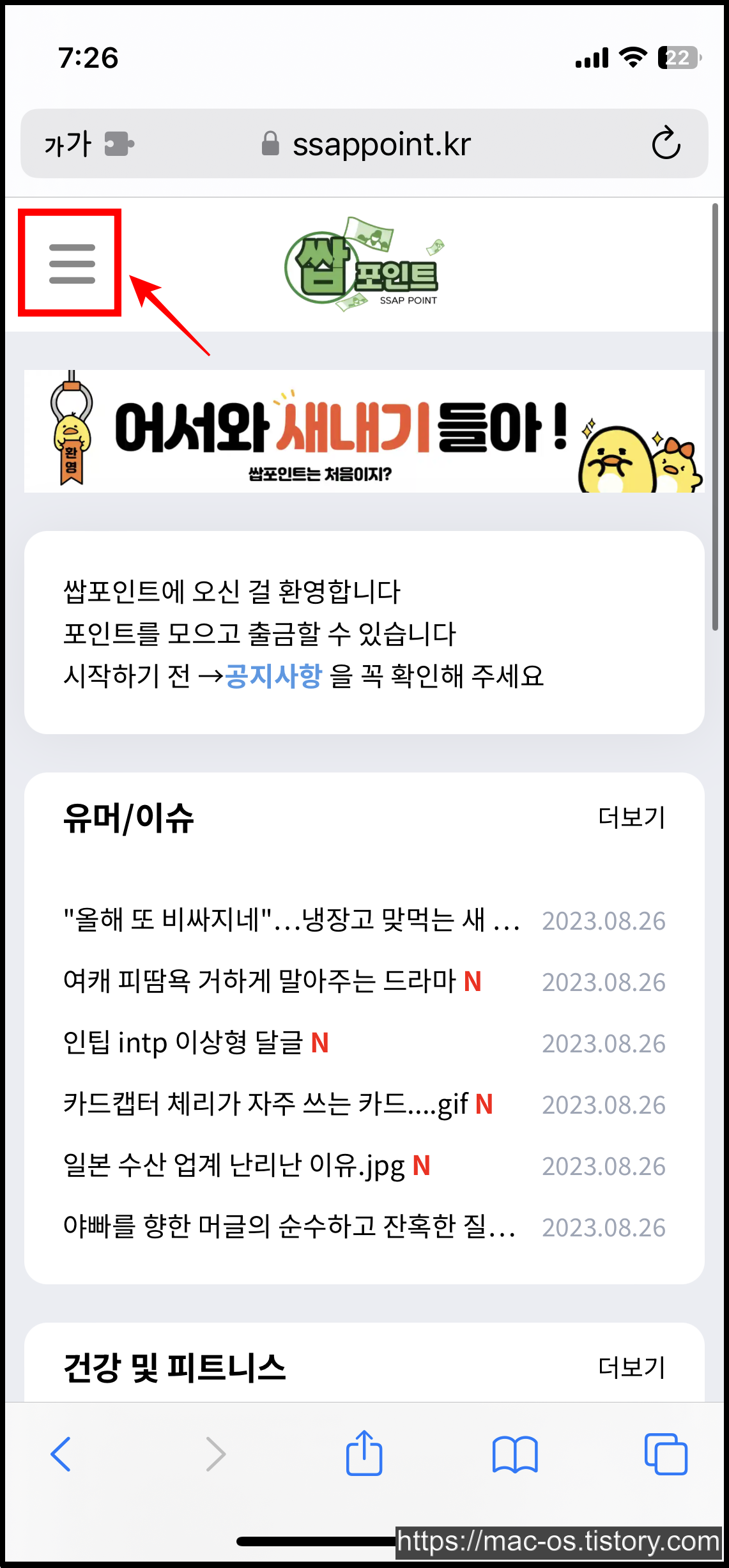 네이버 검색창에 쌉포인트라고 검색하면 상단에 사이트가 나오는데 여기로 들어가면 된다.
