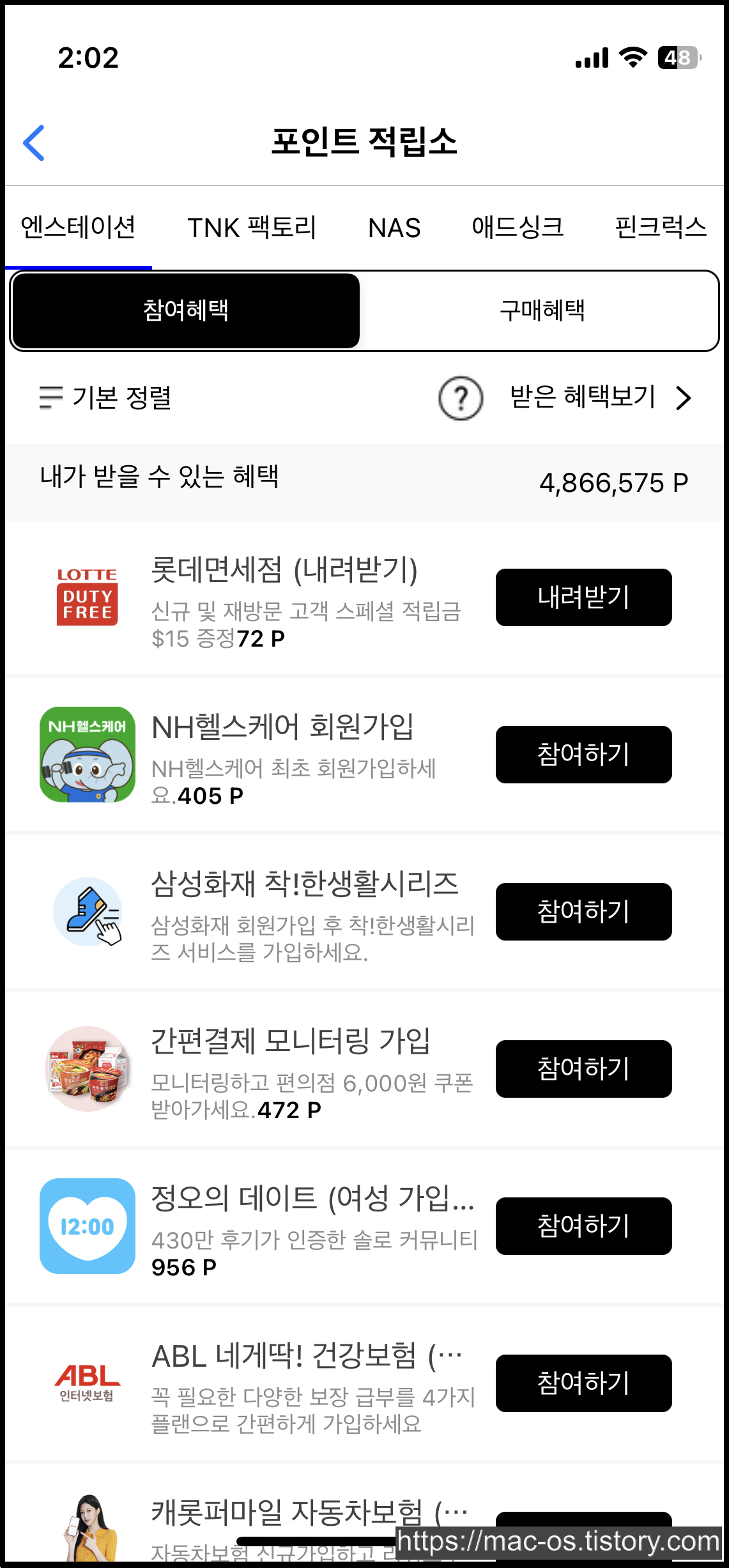 포인트 적립소에는 광고 제휴사에서 제공하는 여러 광고들이 있다. 간단하게는 특정 앱이나 홈페이지 가입하기, 앱 설치 등이 보인다.