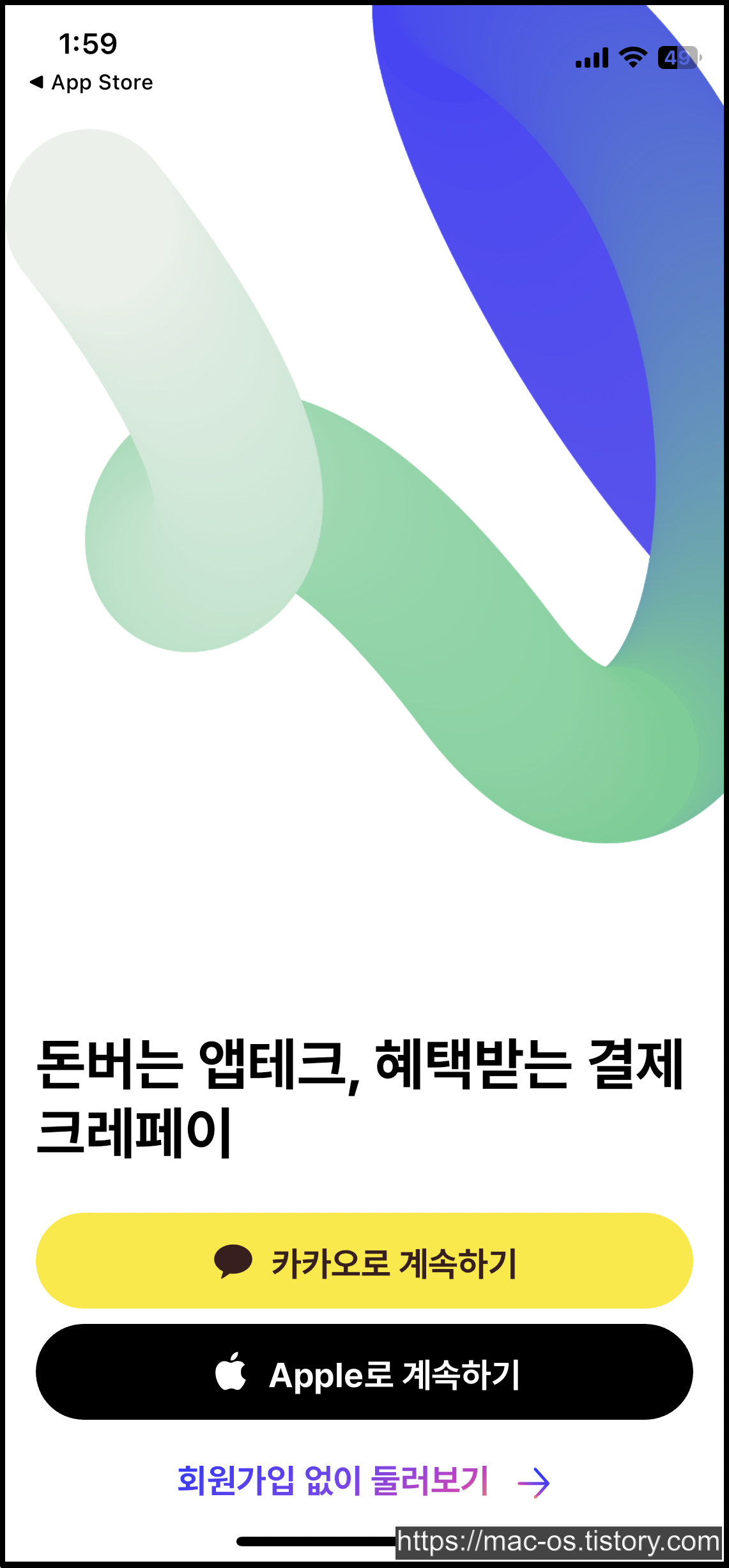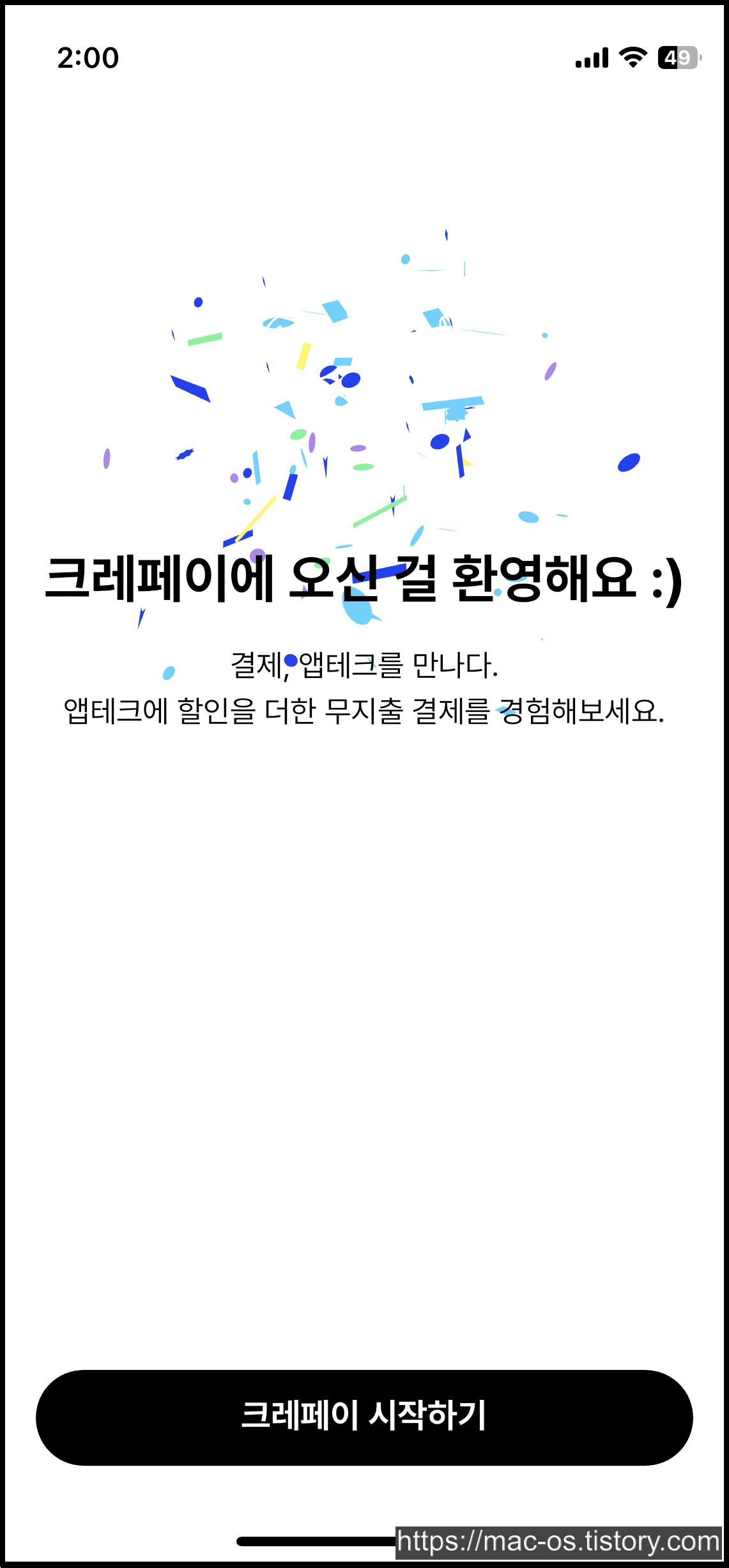 크레페이는 구글 플레이 스토어와 애플 앱스토어에서 설치할 수 있다. 가입은 카카오 또는 애플 계정으로 진행된다.