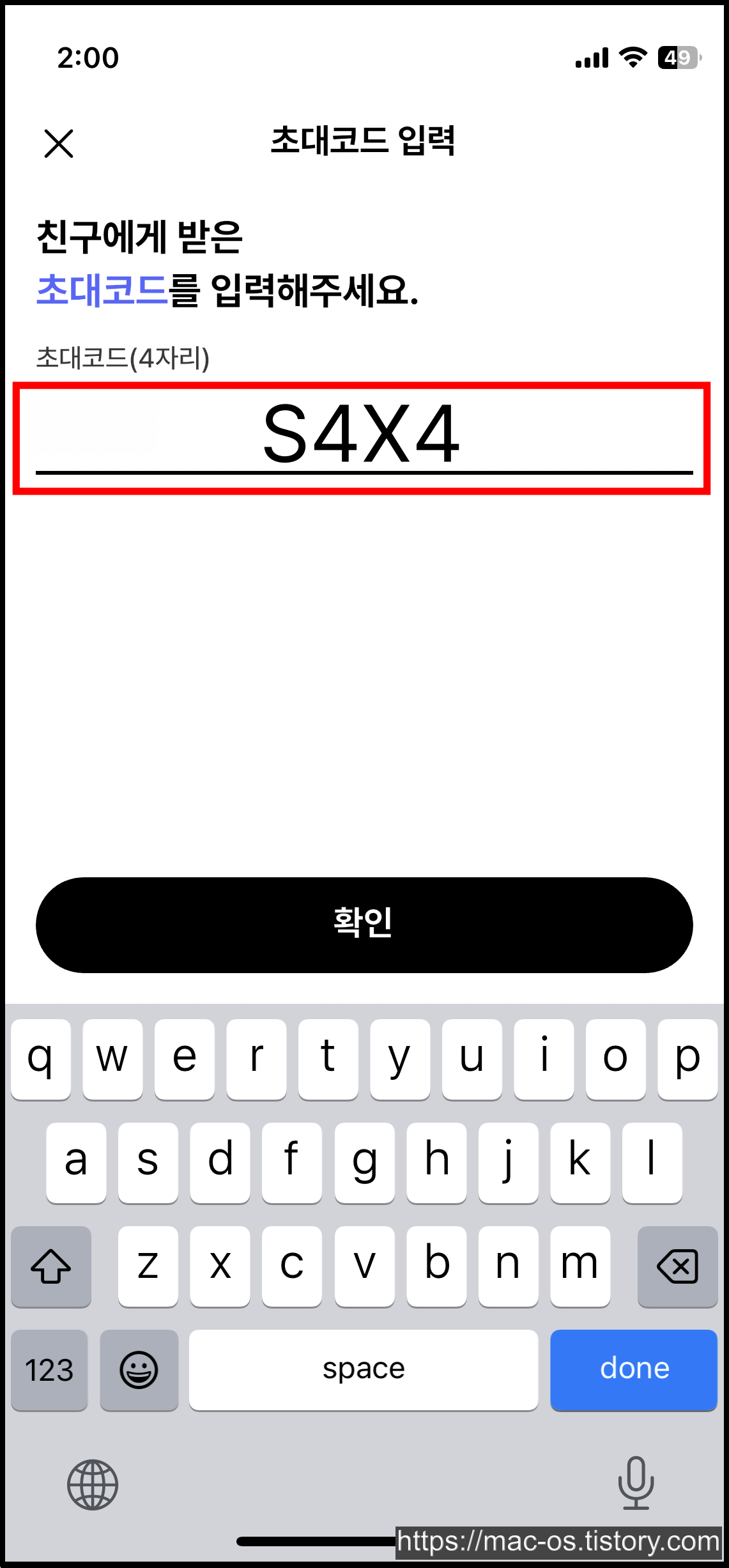 - 초대코드 입력 페이지에서 S4X4를 입력