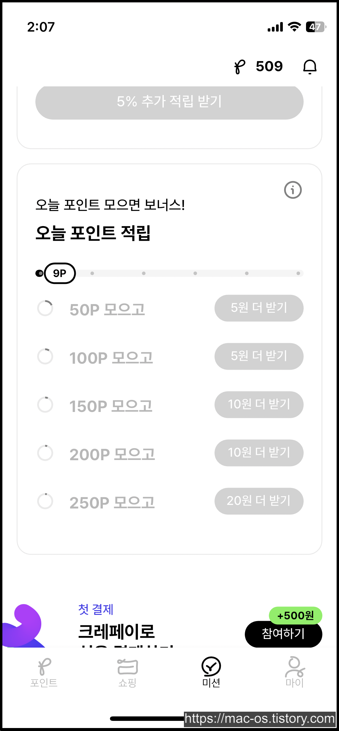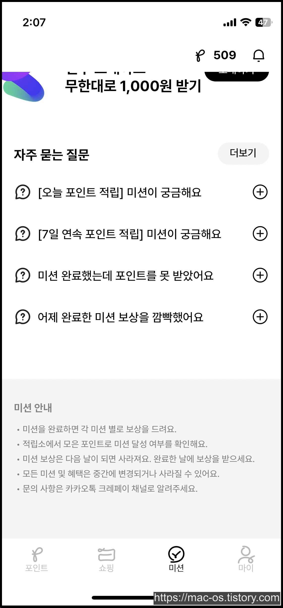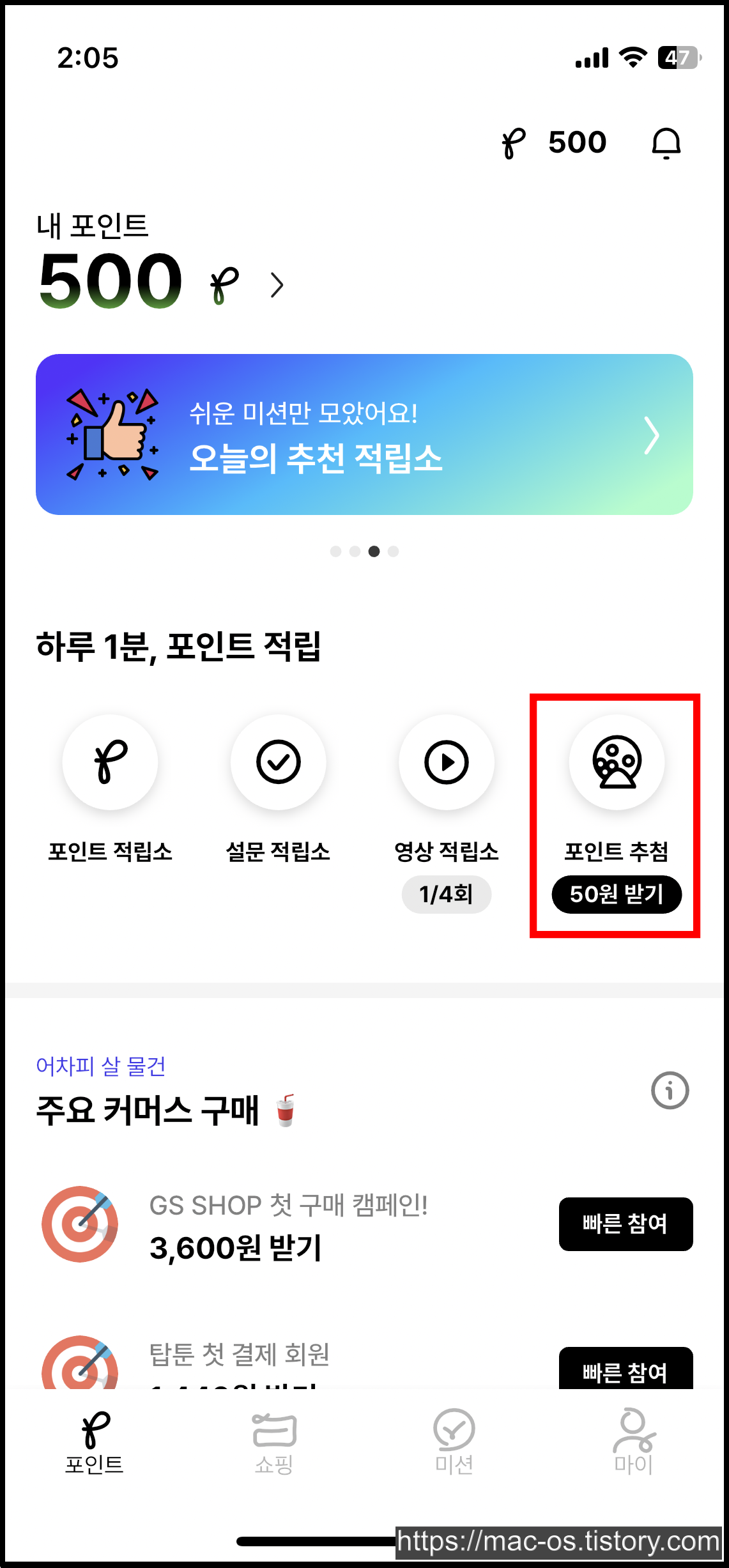 그 외에도 50포인트를 모을 때, 100포인트를 모을 때, 150포인트를 모을 때 등 하루에 50포인트를 얻을 때마다 추가로 포인트를 받을 수 있는 미션도 있다.