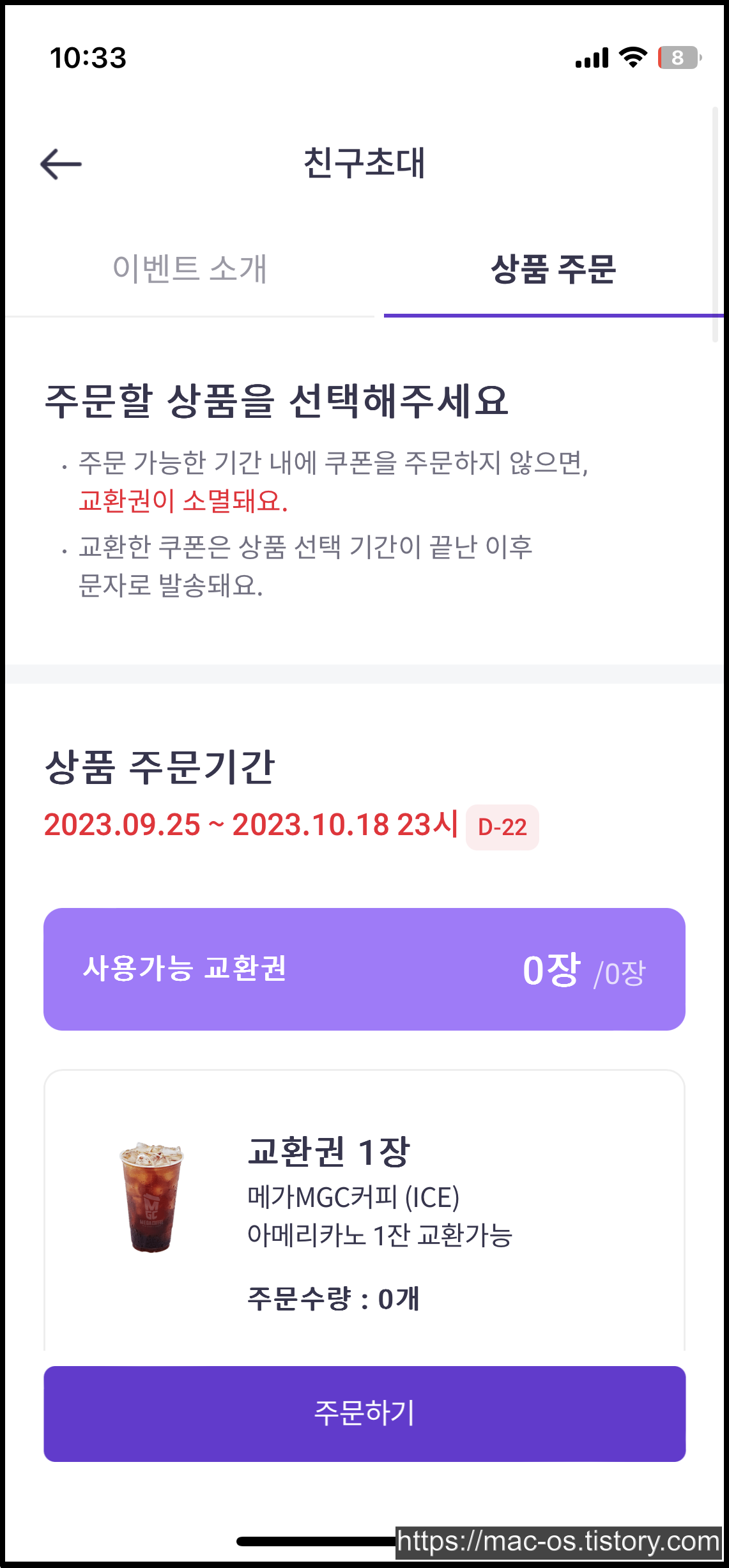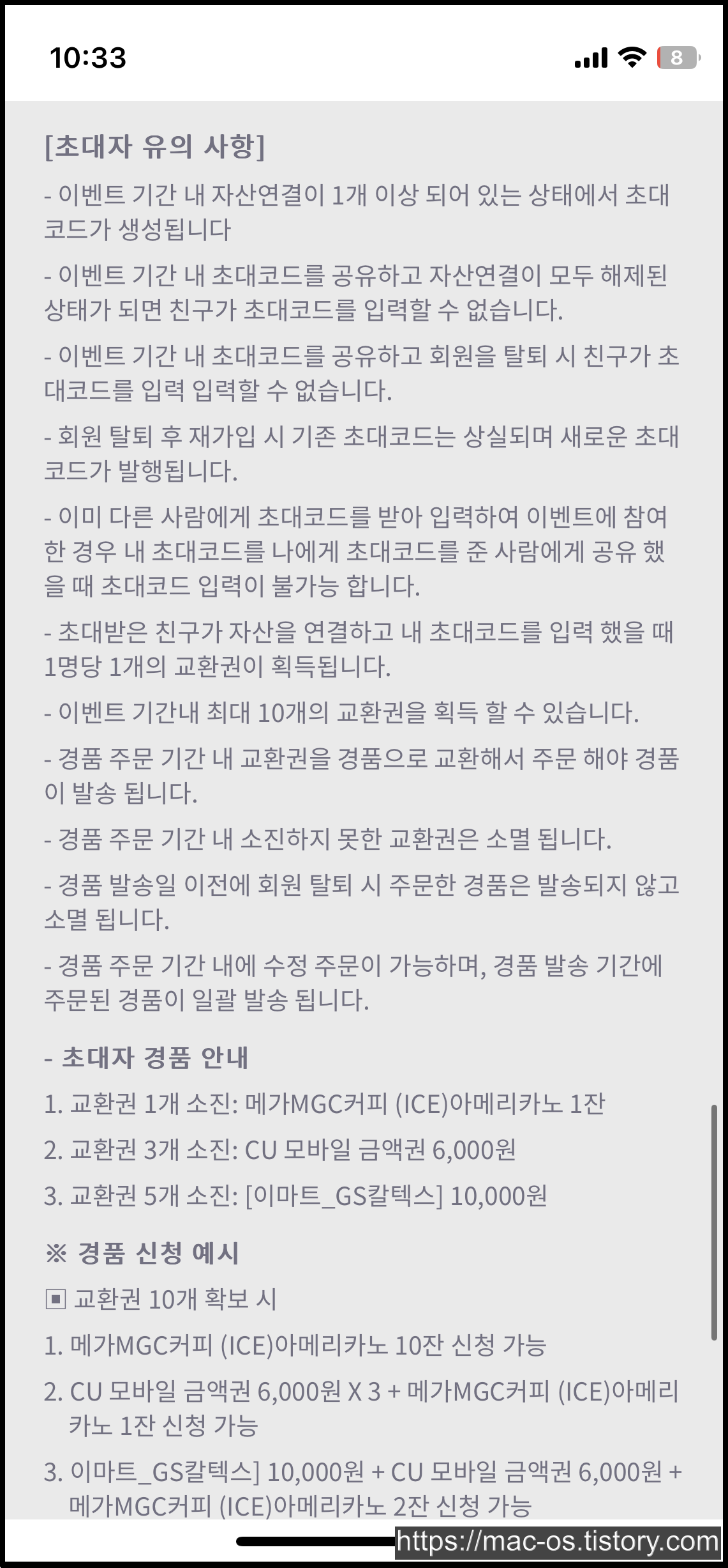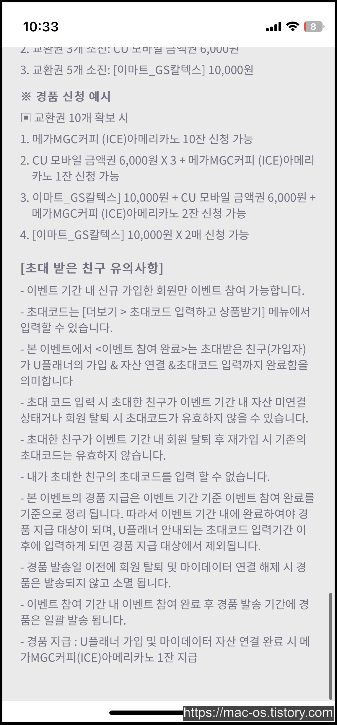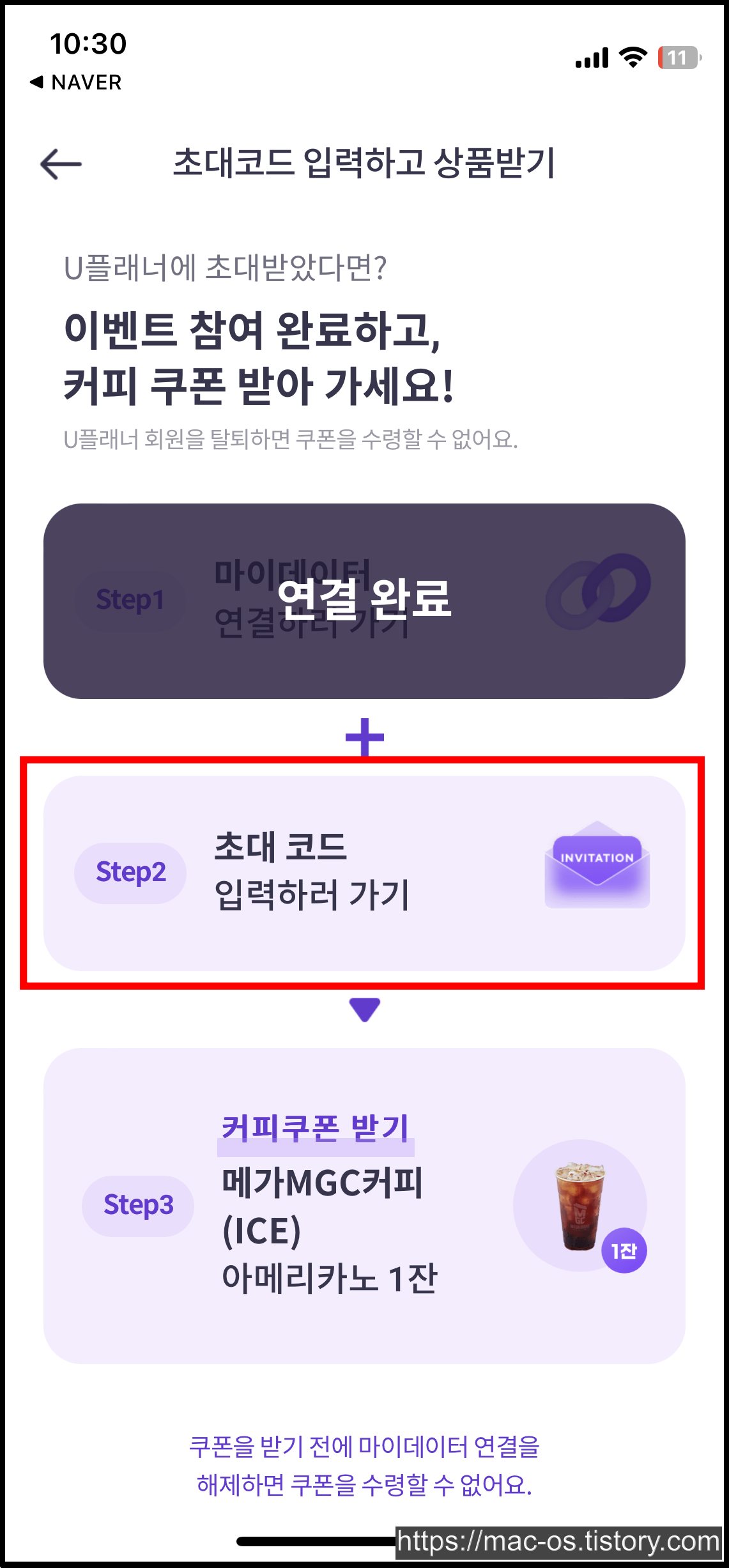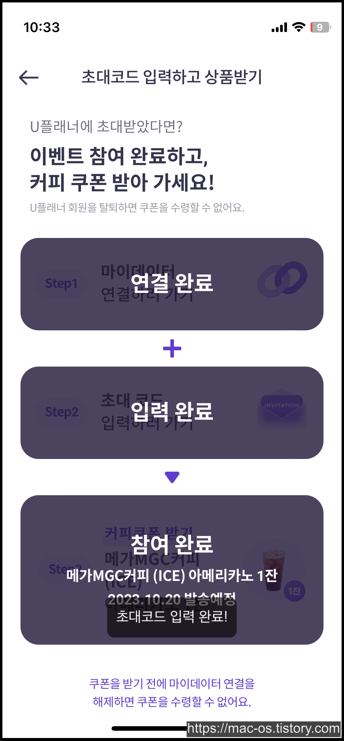 - 초대코드에 GNF3JHB 입력하면 메가 커피 1잔