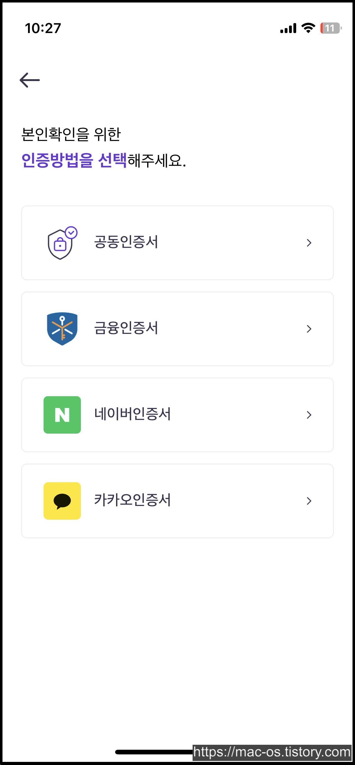 본인확인을 진행한다.