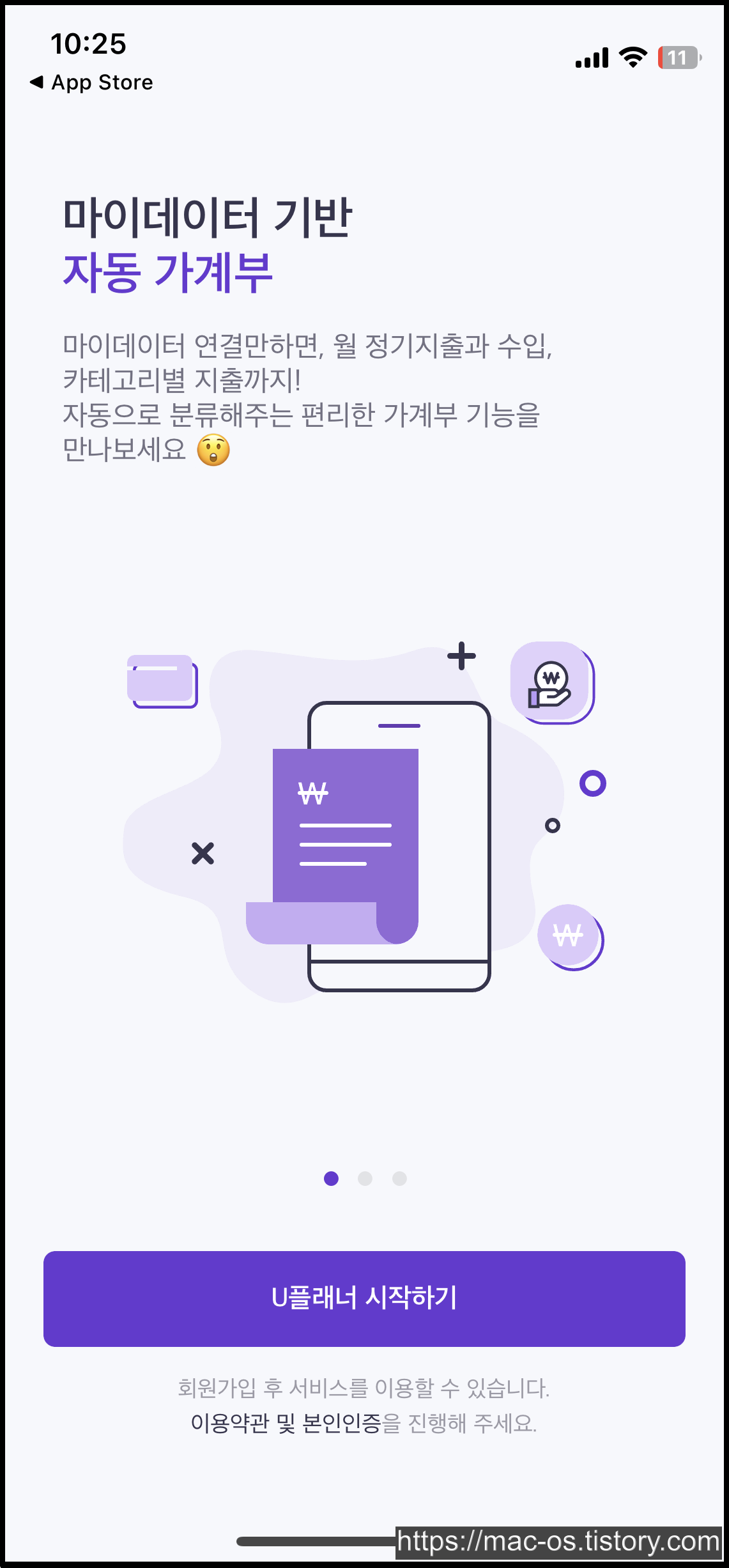 우선 구글 플레이 스토어나 애플 앱스토어에서 유플래너 앱을 설치하고 실행한다.