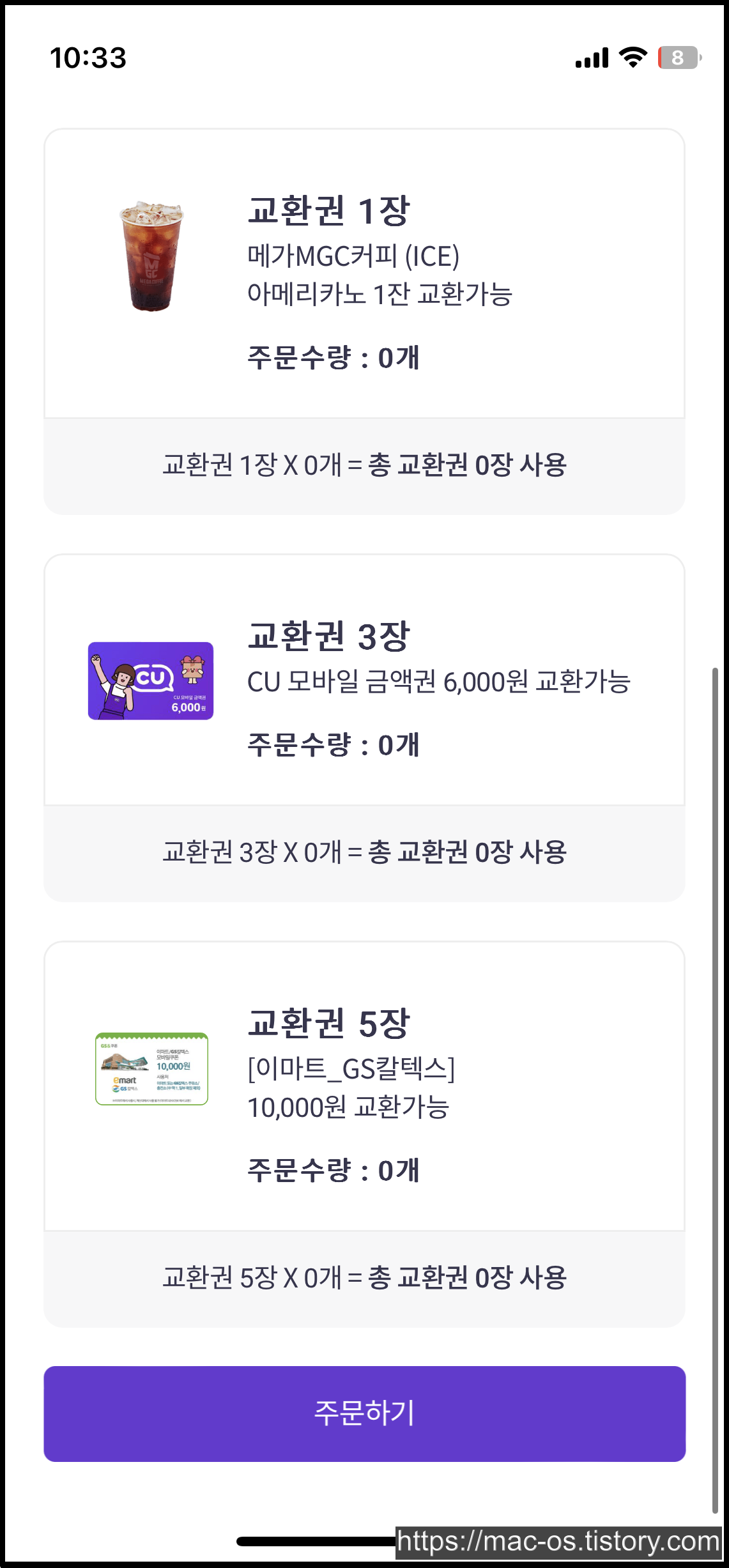 - 교환권으로 메가커피, CU금액권 등 교환 가능