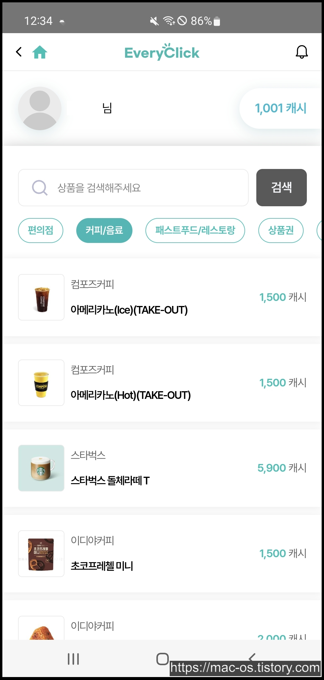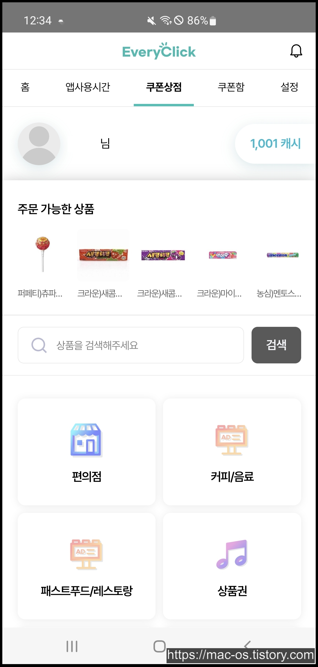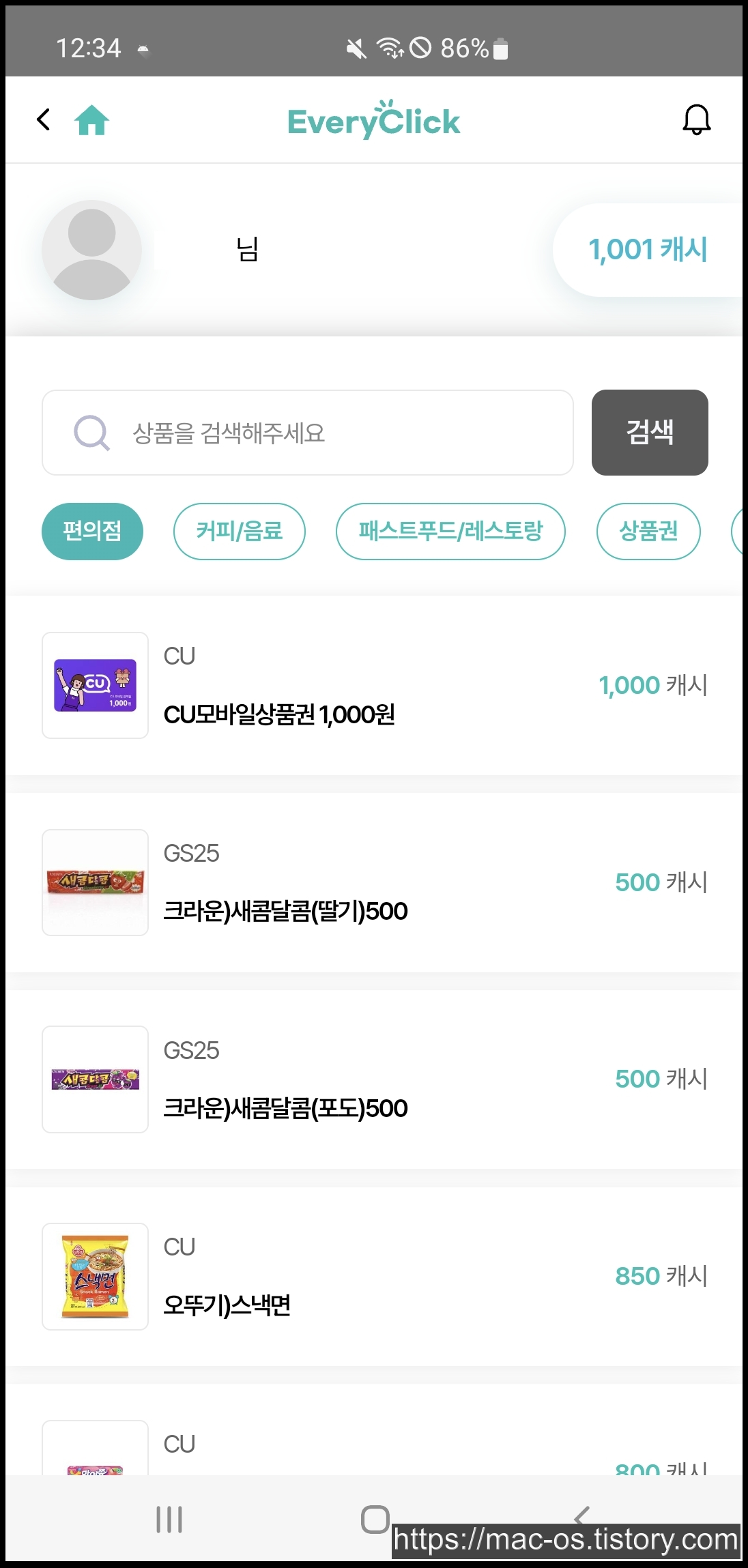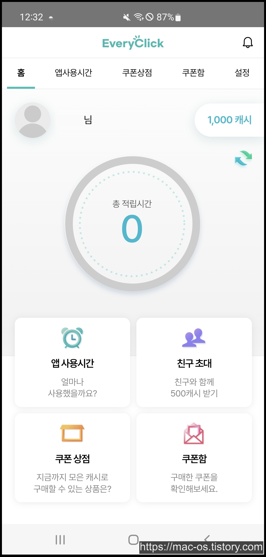 에브리클릭 회원가입을 하고 나면 이런 화면이다.