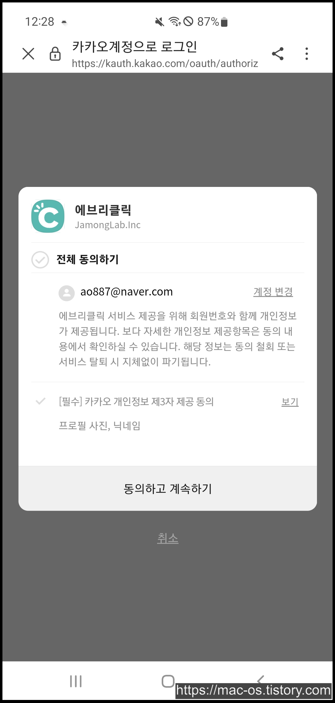 에브리클릭은 구글 플레이 스토어에서 설치하여 네이버, 카카오톡 로그인으로 가입할 수 있다.