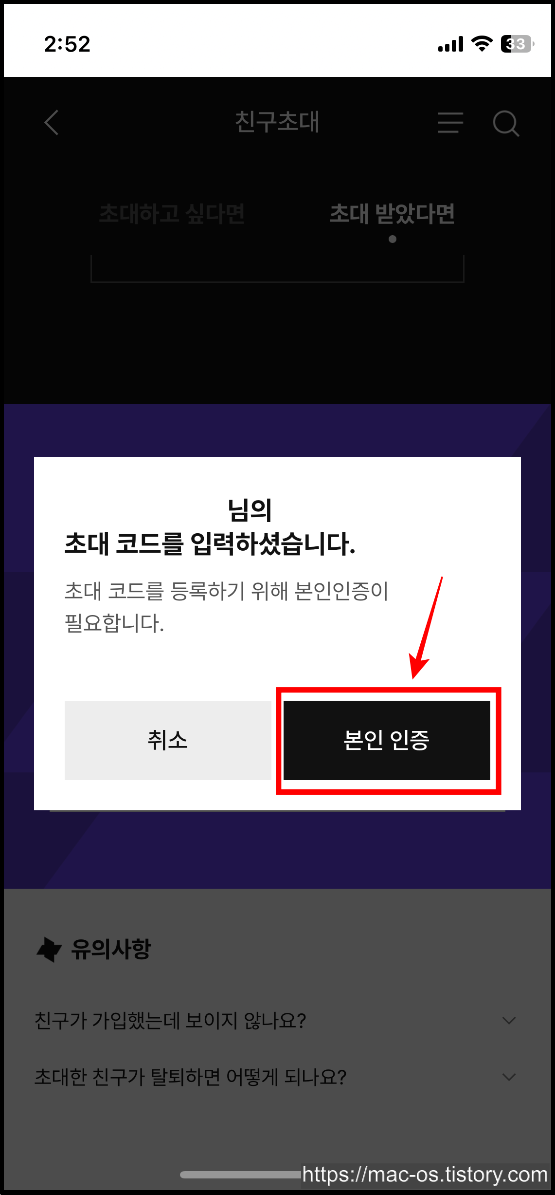 친구가 가입하고 나서 본인인증까지 완료해야 리워드가 지급되고, 초대한 친구가 탈퇴해도 지급된 리워드는 회수되지 않습니다.