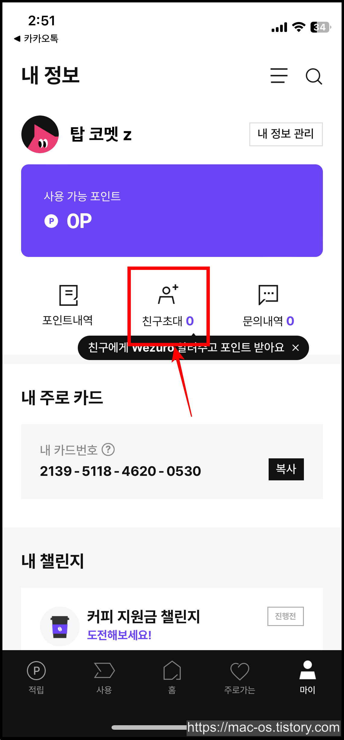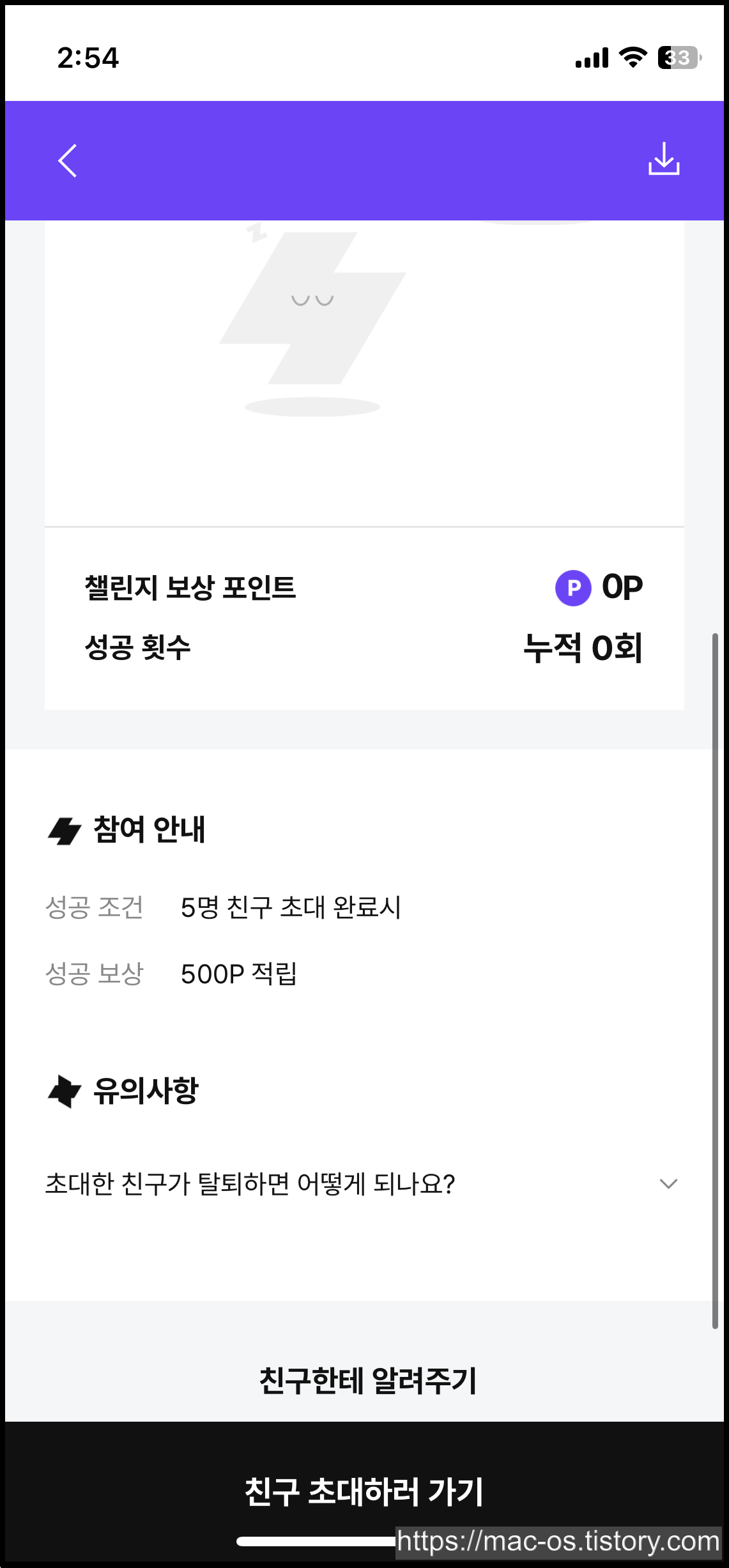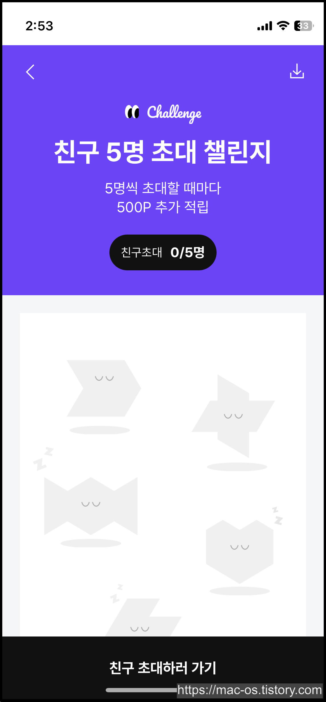 친구를 5명 초대할 때마다 500포인트를 더 주는 이벤트도 있네요.