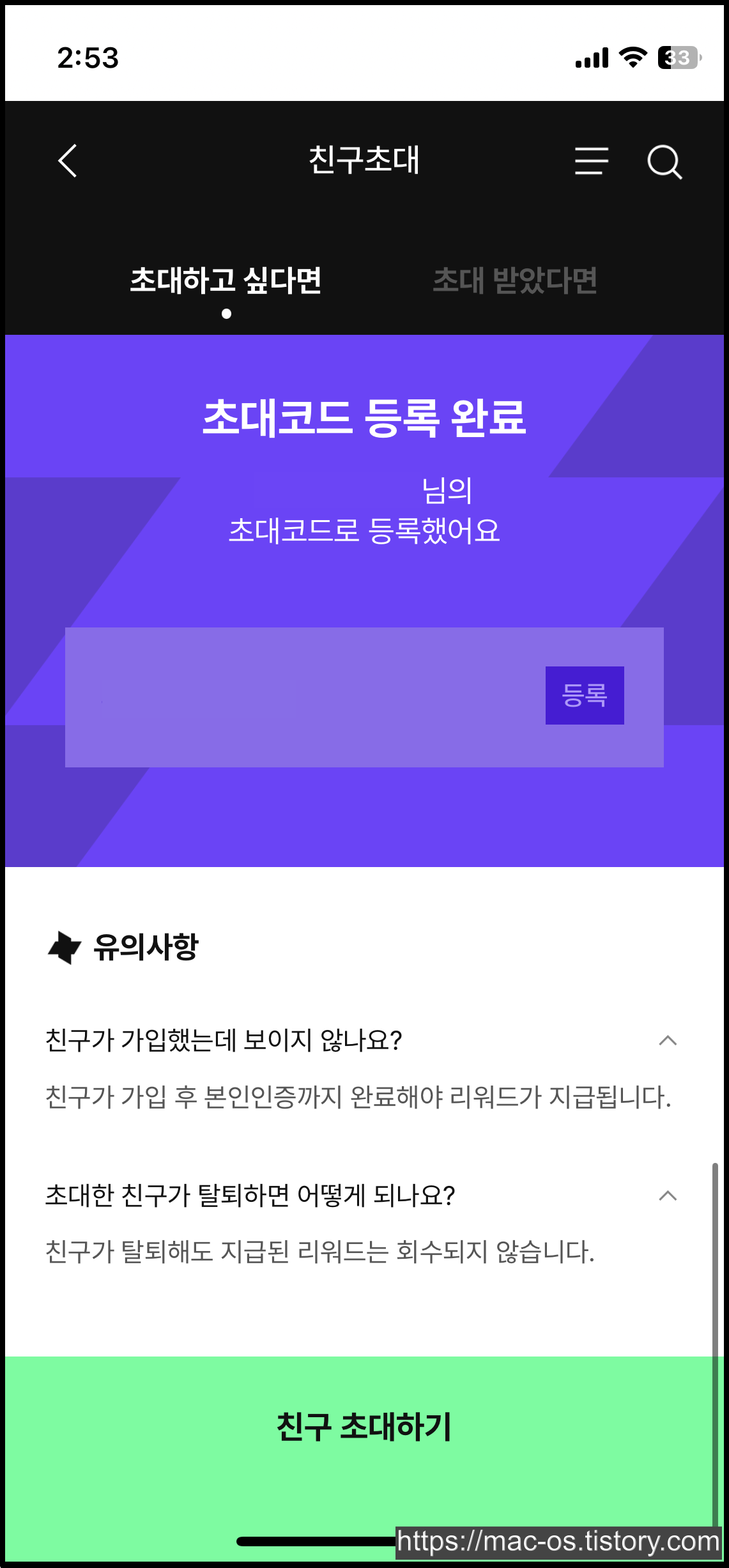 친구 초대 현황도 볼 수 있고, 링크도 발급이 가능합니다.