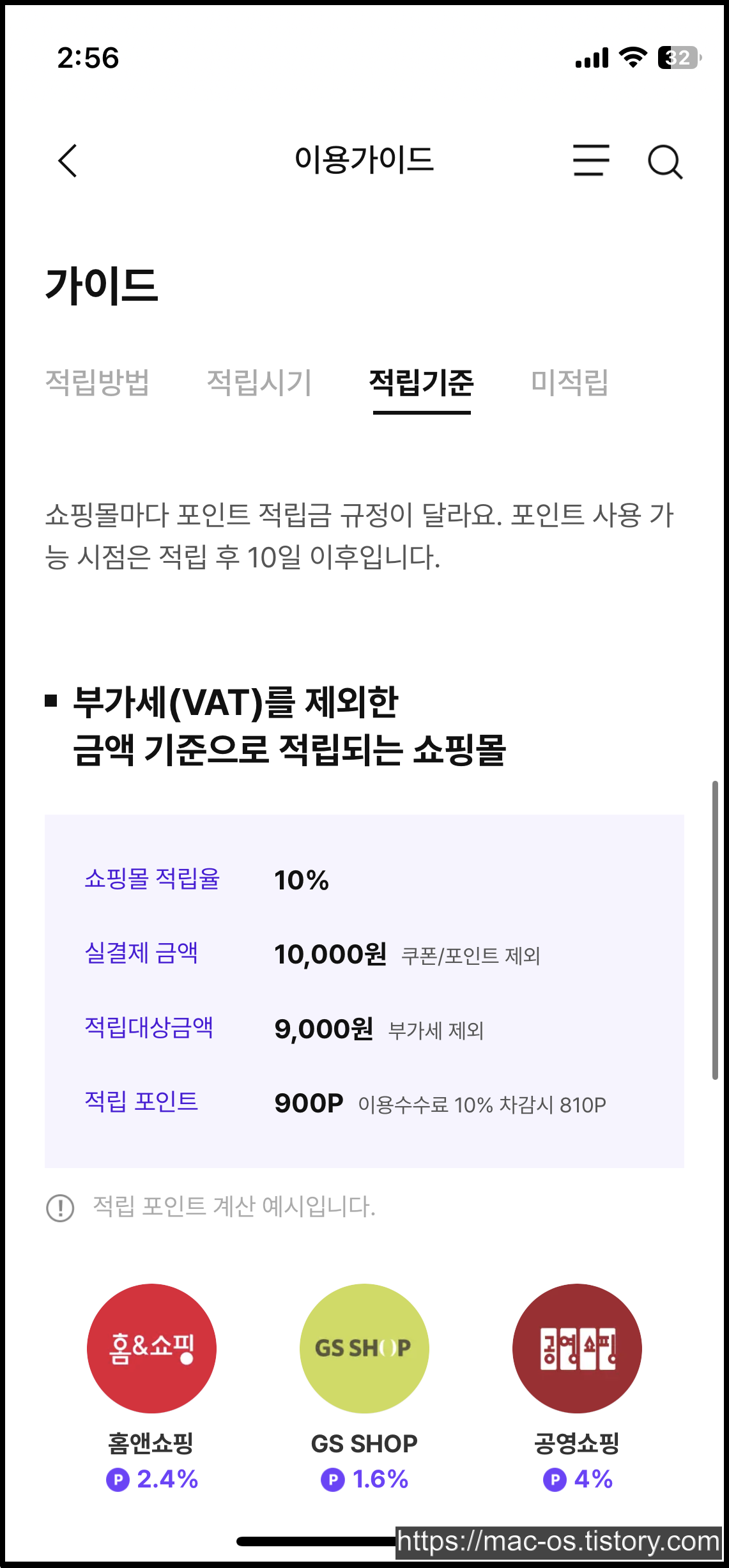 적립기준도 부가세를 제외한 금액 기준으로 적립, 서비스 이용 수수료 10%를 차감하는 쇼핑몰로 나눠져 있습니다.