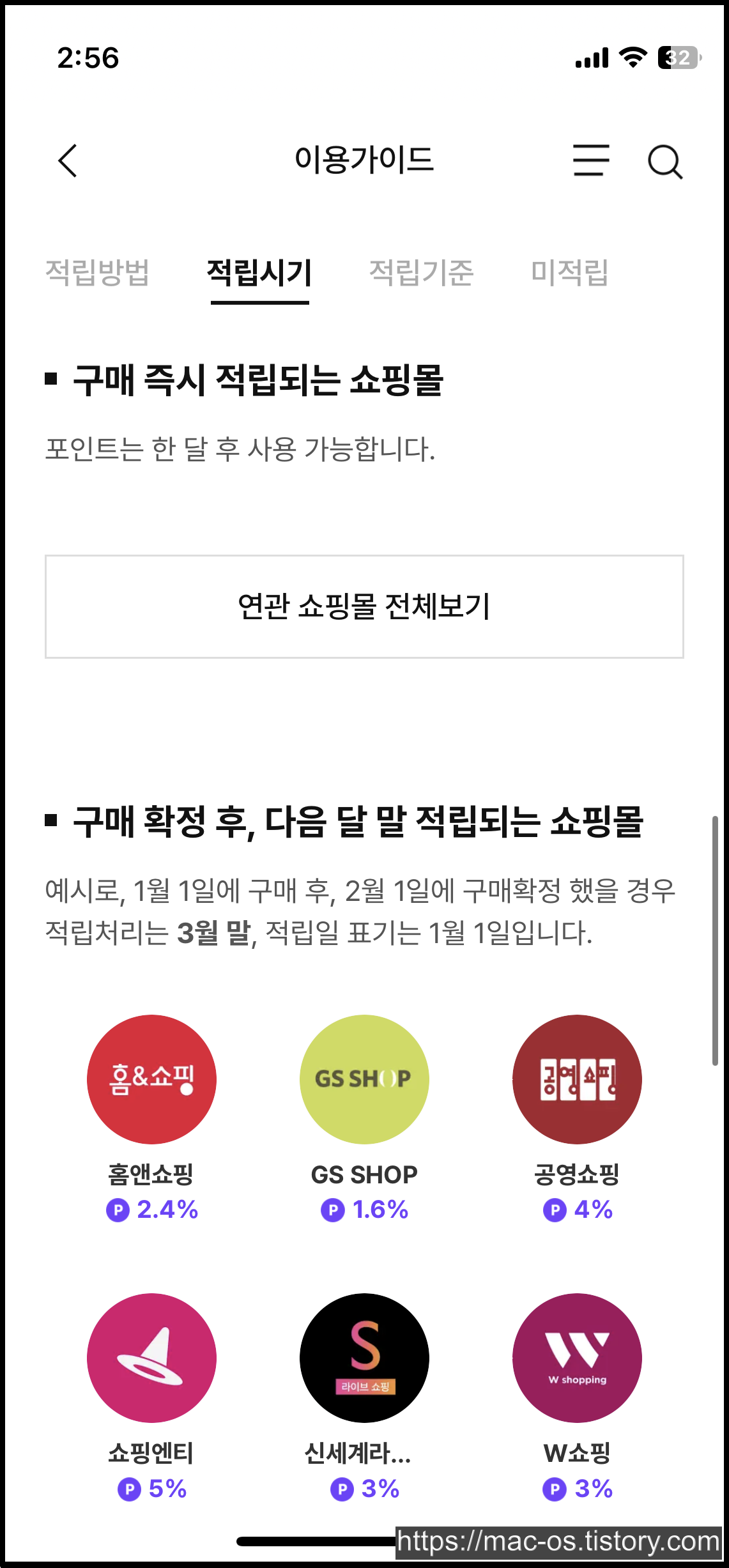 위주로를 경유하여 쇼핑몰에서 구매 후 적립은 구매 시점 기준이 아닌 구매 확정 시점 기준으로 적립 처리됩니다. 여행은 투숙 및 여행완료 시점 기준이라고 하네요. 각 쇼핑몰마다 적립시기가 다르니 확인해 보세요.