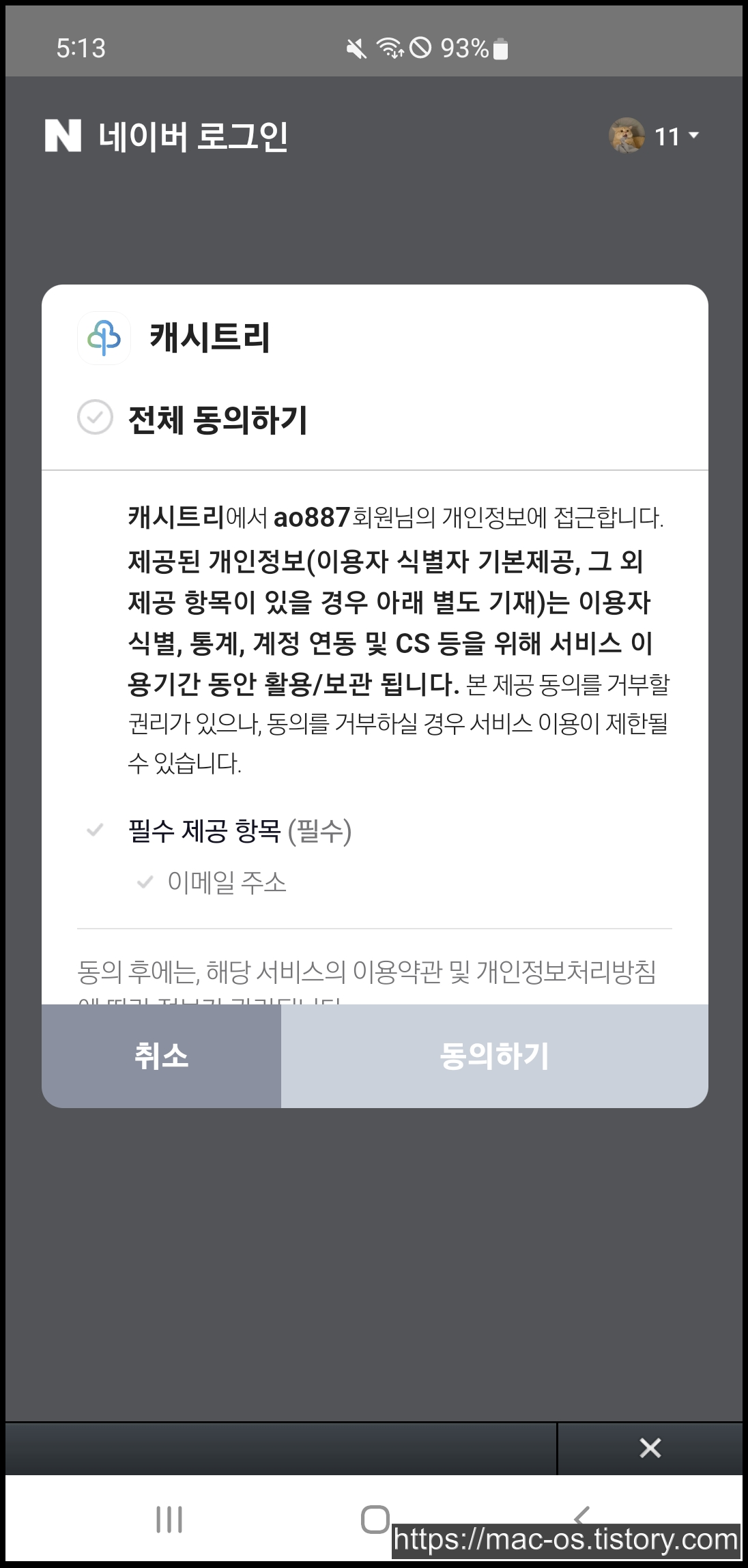 네이버 로그인 후 약관에 동의한다.