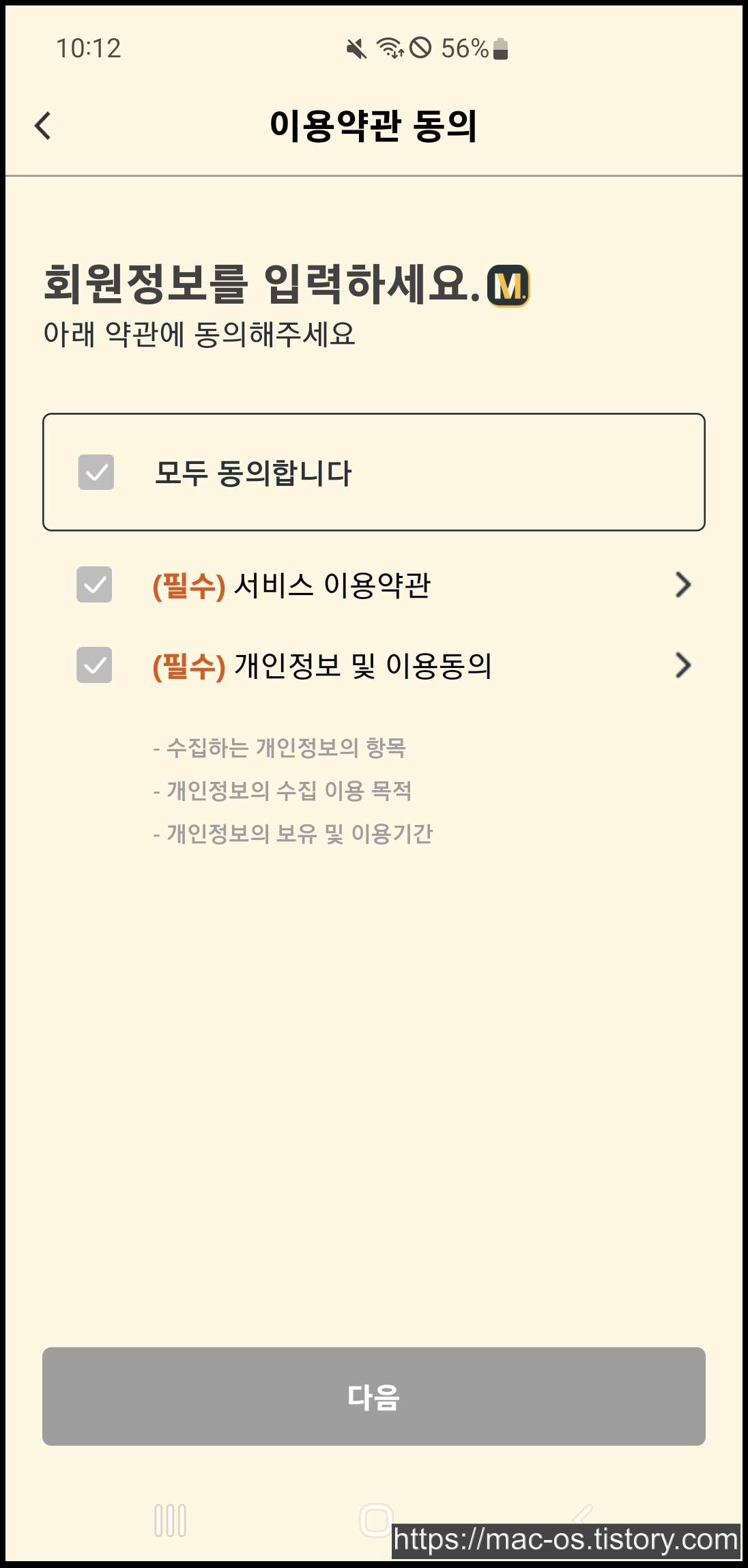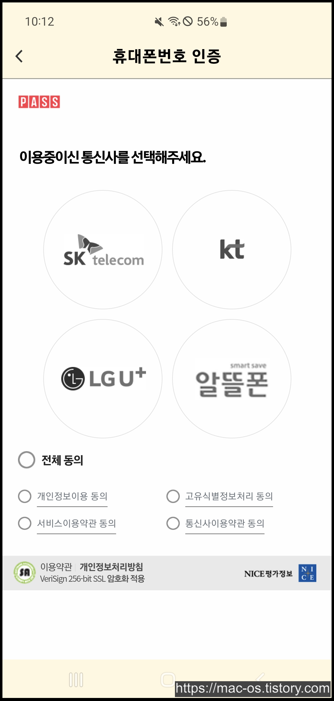 이용약관 동의 후 휴대폰 번호 인증을 진행합니다.
